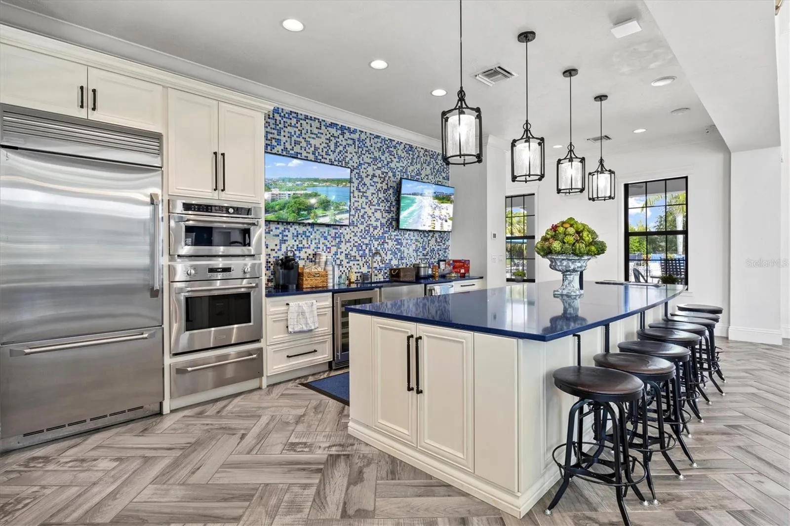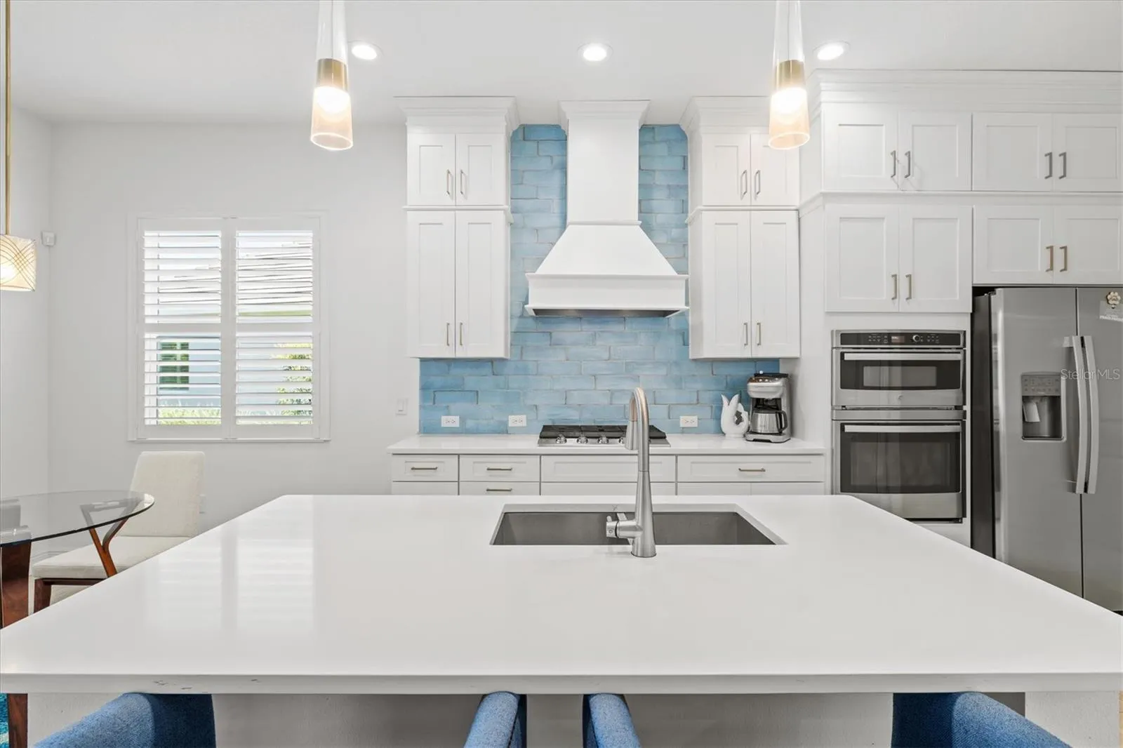 This is your opportunity to live on the highly sought-after Ocean Blue Cove within Indigo. Nestled on an oversized cul-de-sac lot, this nearly new home offers modern Florida living in a serene setting. Built just three years ago, the open-concept design features a spacious great room with coffered ceilings, tile flooring throughout the main areas, and a seamless flow into a gourmet kitchen complete with a gas range, stacked microwave/oven, custom backsplash, quartz countertops, and upgraded finishes.