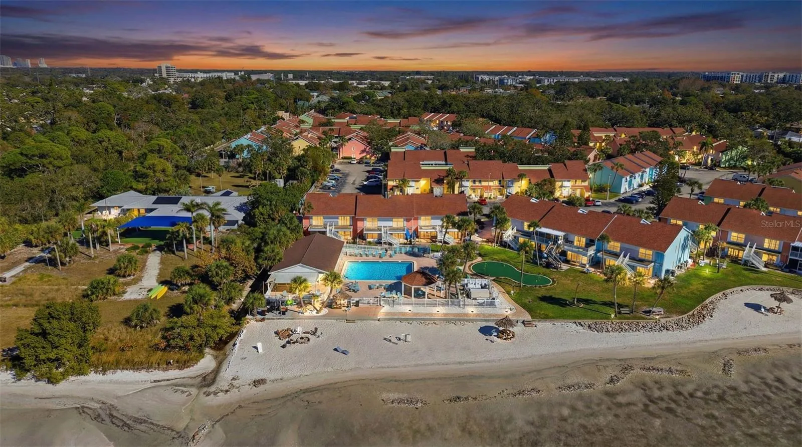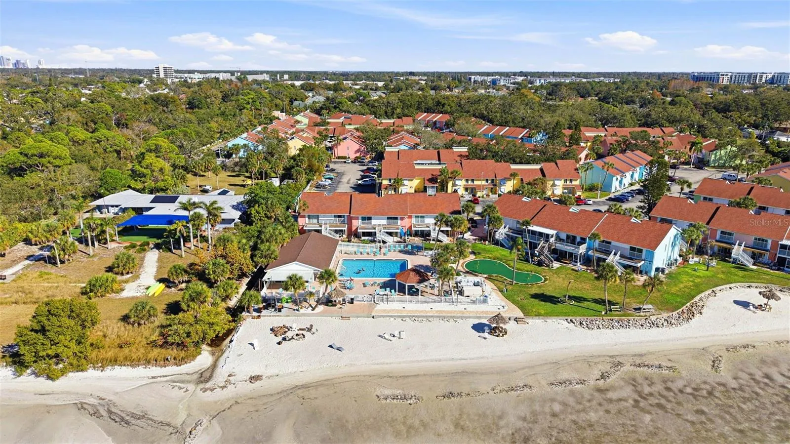 Welcome to resort-style living in the highly sought-after, gated waterfront community of Bermuda Bay! This beautifully maintained turnkey, 3-bedroom, 2-bath, 1375 sq. ft. condo has been beautifully restored and offers the perfect blend of comfort, convenience, and Florida lifestyle. Located on the first floor, this light and bright unit features an open-concept living and dining area, ideal for entertaining or relaxing after a day at your very own PRIVATE BEACH. Attention to detail and pride in ownership is evident throughout. All windows and slider have been replaced. The kitchen features stainless steel Samsung appliances, elegant granite countertops, soft close shaker style cabinets, glass tile backsplash, and two pantries. The spacious primary suite includes an en-suite bathroom and generous closet space. The two secondary bedrooms feature walk in closets and share a jack & jill bathroom with double sinks. Both bathrooms have also been updated with granite countertops, new vanities, and stunning tile design. This condo comes furnished (minus coffee table & 2 Bird portraits)with a washer & dryer and tons of storage space throughout!!!Bermuda Bay is a waterfront community on Boca Ciega Bay offering incredible amenities, including free sunsets, two swimming pools (one heated), a spa, tennis courts, racquetball, shuffleboard, kayak storage, BBQ areas, a clubhouse, and did I say a PRIVATE BEACH? The community is pet-friendly and allows short-term rentals (30 + DAYS), making this an excellent option for a full-time residence, vacation home, or investment property. HOA fees include water, cable, and highspeed internet service. Ideally located just minutes from the Gulf beaches, Ft. DeSoto Park, DOWNTOWN St. Petersburg, Eckerd College, USF, marinas, golf courses, museums, shopping, and dining, this condo puts you in the heart of everything the Tampa Bay area has to offer. Whether you’re looking for a primary residence or seasonal retreat, don’t miss this opportunity to make this condo your perfect seasonal winter wonderland or a year-round vacation in Paradise.