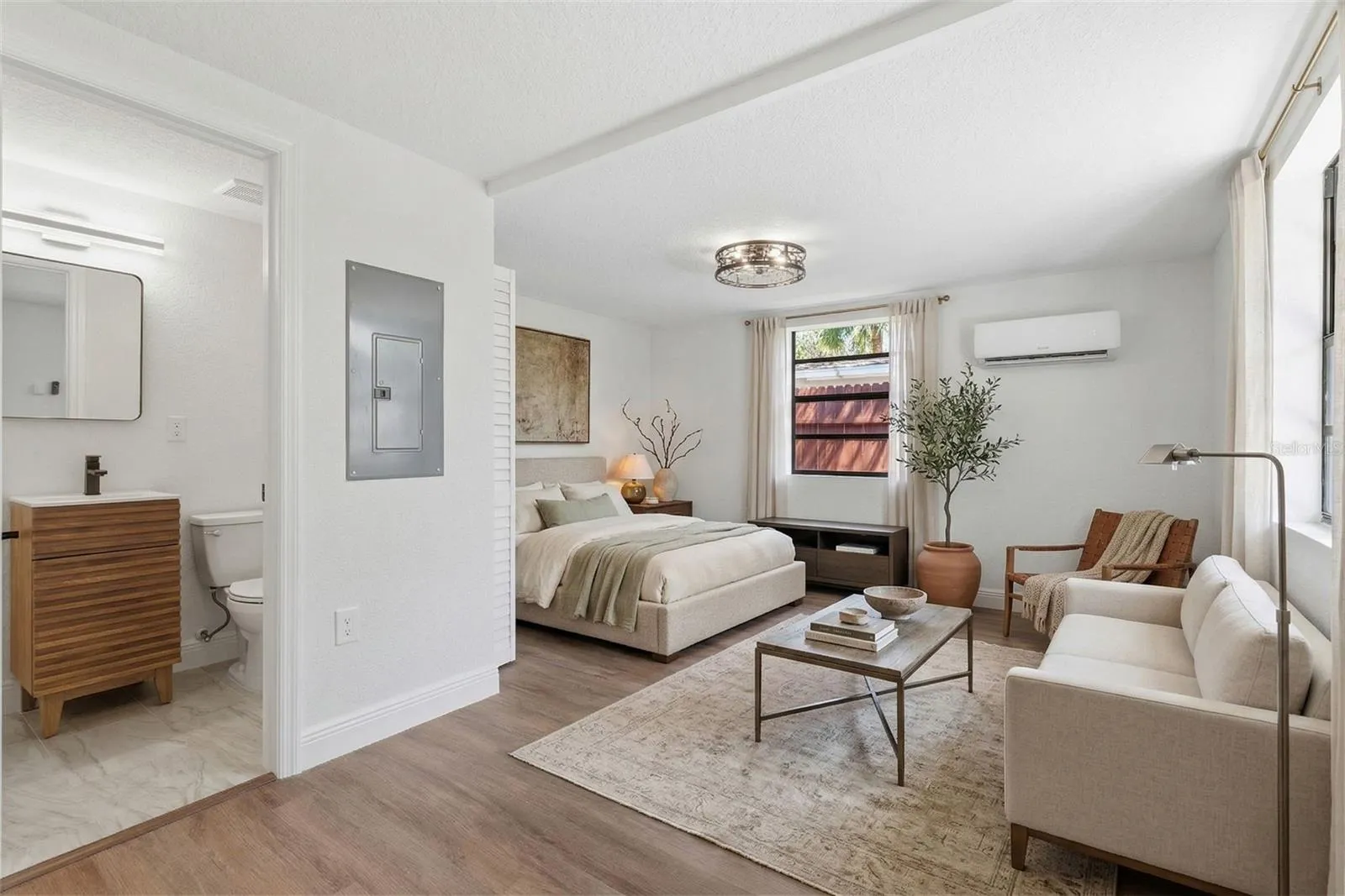 One or more photo(s) has been virtually staged. This immaculate rental property is located in beautiful Madeira Beach, FL approximately 500 feet from the nearest beach access and a short walk or drive to shopping, dining and entertainment. Madeira Beach stretches 2 miles along the Gulf of Mexico and is home to Pinellas County’s #1 tourist attraction, John’s Pass Village and Boardwalk, which offers shopping, dining, entertainment and night life. The St. Pete-Clearwater and Tampa International Airports are an approximate 30 minute drive and 45 minute drive respectively. This well-appointed studio unit offers a functional layout with open floorplan living and plenty of space for a dining room / kitchen combination, plus a generously sized primary en-suite bathroom. Enjoy a comfortable flow, ample natural light, a common space in the back, and a covered front entry area. Located just minutes from the beach, dining, and shopping. Ideal for tenants seeking extra space in a coastal setting.