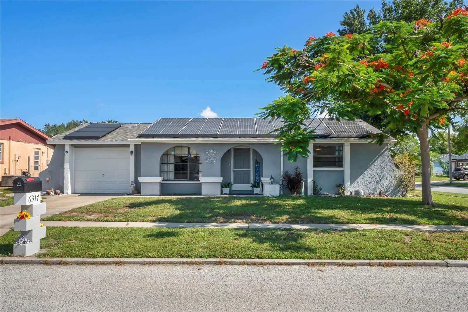 Corner Lot, Screened enclosed POOL home with Double Solar Panels! Stop paying too much for power bills! Come check out this spacious floorplan with a multi-use floorplan. Could easily be made into an in-law suite with making the family room and primary suite, bath with private entry. Open floorplan with open kitchen, Stainless steel appliances, pass through bar to large, screened patio area which has vinyl windows. Laminate floors in the bedrooms and tile throughout. The Pool was refinished in 2023 & new tiles with tons of entertaining area for your family and friend’s New A/C 2023, Roof 2017 and Double Solar panels that the seller will be paying off at closing. No HOA and No Flood Ins Needed. Call for your showing today.