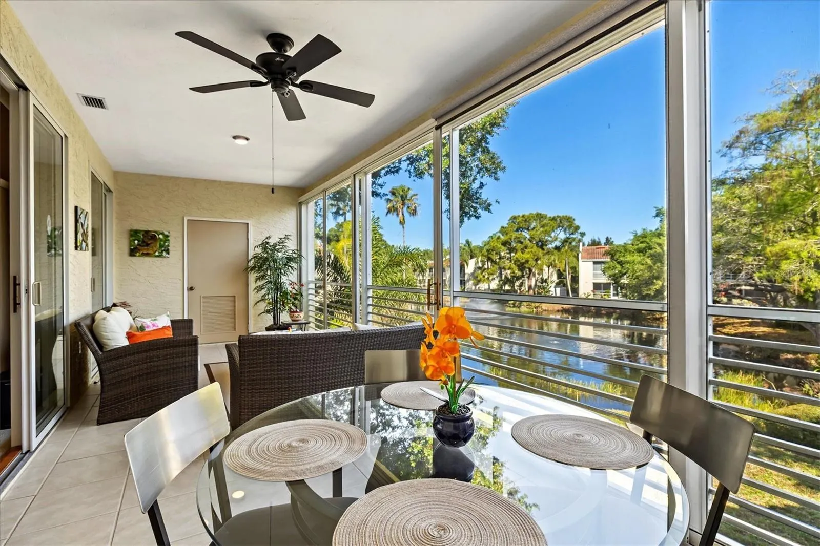 Beautifully updated condo in the desirable Vizcaya community with serene lake views! This move-in ready unit features a 2021 A/C, new hurricane-impact windows and sliding glass doors, and brand-new carpet throughout. The kitchen was fully updated in 2022 with modern finishes, offering both style and functionality. Enjoy a light and bright open layout with a private screened lanai overlooking the water—perfect for relaxing or entertaining. Gated, maintenance-free community with convenient access to shopping, dining, and Gulf beaches.