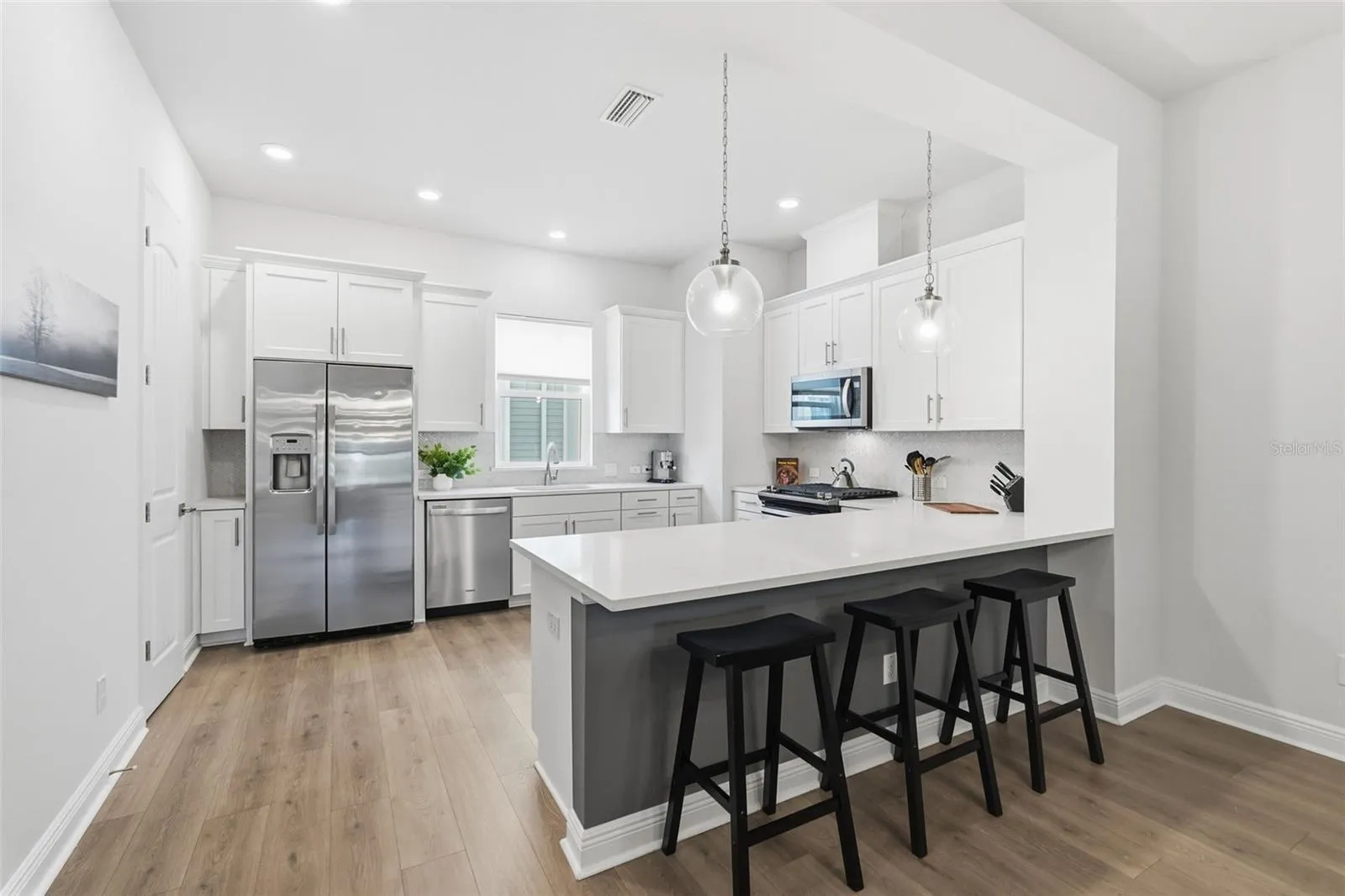 Modern downtown living at its finest! Step inside this impeccably maintained 2019-built townhouse in the boutique Burlington Townhomes community—where style, privacy, walkability, and city views come together effortlessly. Unlike interior-facing units, this residence fronts 8th Street, offering open downtown vistas instead of your neighbors (yes, you’ll actually want to look outside), as well as a distant peek-a-boo view of Mirror Lake just one block away. A charming, gated entry courtyard welcomes you home—perfect for potted plants, morning coffee, or firing up the grill before a night on the town.