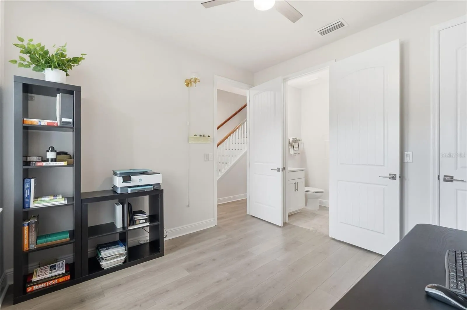 Retreat to the third floor, where the primary master bedroom suite truly shines. The spacious bedroom is framed by three large windows overlooking 8th Street, filling the space with natural light and city views. The spa-like ensuite bath features a dual sink vanity, an oversized walk-in shower with a rainfall showerhead plus a secondary wall-mounted shower system, along with a generous walk-in closet. An additional bedroom suite with full bath completes this level. Add in a two-car garage, low HOA fees, no flood zone concerns, and a home that shows like a model, and you have a rare downtown opportunity that checks every box.