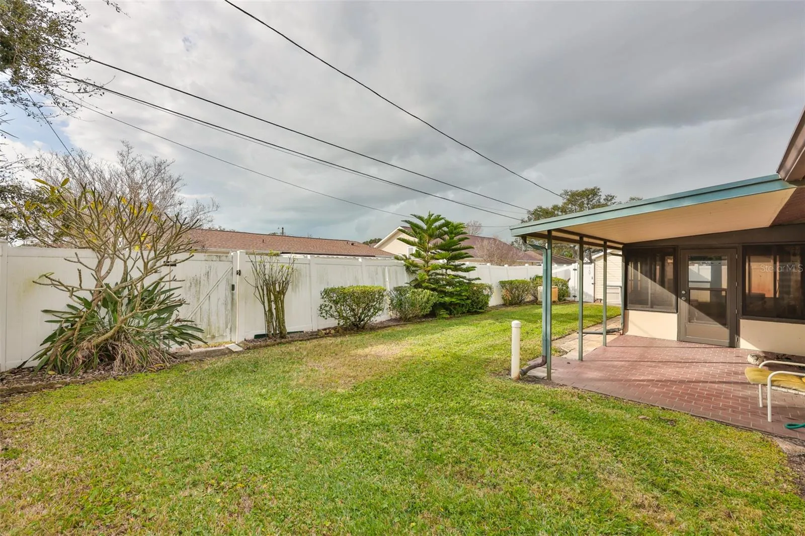 Well-maintained 2 bedroom, 2 bath single family home with a 2 car garage and spacious circular driveway. This solid block and stucco residence features an open floor plan with tile flooring throughout, ceiling fans, and a bright kitchen with eating space. Sliding glass doors lead to a large covered lanai overlooking the fully fenced backyard with vinyl privacy fencing. Recent updates include a new A/C (2021) and a whole-house generator installed in 2020 that automatically starts during power outages. Extra shelving in the garage provides ample storage. Range, dishwasher, refrigerator, washer, and dryer are all included. Public utilities. Conveniently located just a short drive to beaches, schools, shopping, dining, downtown, and easy interstate access.