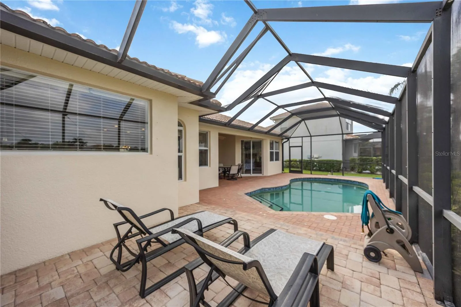 Welcome to this lovely 3 BR, 2 BA plus office Pool Home behind the sought-after gates of Stoneybrook at Heritage Harbour Golf Course Community! This Golf Community offers an Exceptional Lifestyle with non mandatory golf memberships and wonderful amenities! Open concept design boasts crown molding and tray ceilings throughout. Step into this home and enjoy the view of your own pool and the golf course. The kitchen and living areas flow effortlessly, making this home ideal for entertaining with generous family room, formal living room and dining room. Great kitchen with center island, breakfast nook, SS appliances and breakfast bar. Retire to your Primary suite with sliders to pool, walk in closet and en suite bathroom with dual sinks. 2 more spacious spare bedrooms share a full bath. Newer wood floors throughout much of living area! New AC compressor and ductwork. Home also has hurricane shutters and barrel tile roof! Utility room offers sink, cabinets and washer & dryer. Relax in your own private oasis with pool and generous undercover area. Plenty of room for entertaining too with pavered deck. Live like you’re on vacation all year long in this fabulous Resort Community with Heritage Harbour Golf and Eatery with 18 hole golf course and no mandatory golf fees! Pay as you play or memberships are available! Spend time at the heated pools, spa, splash pool, pickleball/tennis courts, active clubhouse, fitness center, beach volleyball, basketball courts, bocce ball, corn hole, dog parks, playgrounds and picnic areas! The active rec center hosts events such as Trivia nights, art shows, poolside movies, potluck dinners and more! Also 2 mile trail around scenic lake. So much for such low HOA fees! Easy access to the New Heritage Harbour Market Place with lots of shopping and restaurants! Stoneybrook is close to the beautiful beaches of Anna Maria Island, Siesta Key, downtown Sarasota and Lakewood Ranch, restaurants and shopping, I75, Tampa, St Pete and airports! Welcome to Paradise! Note: CDD fee is in the tax figure
