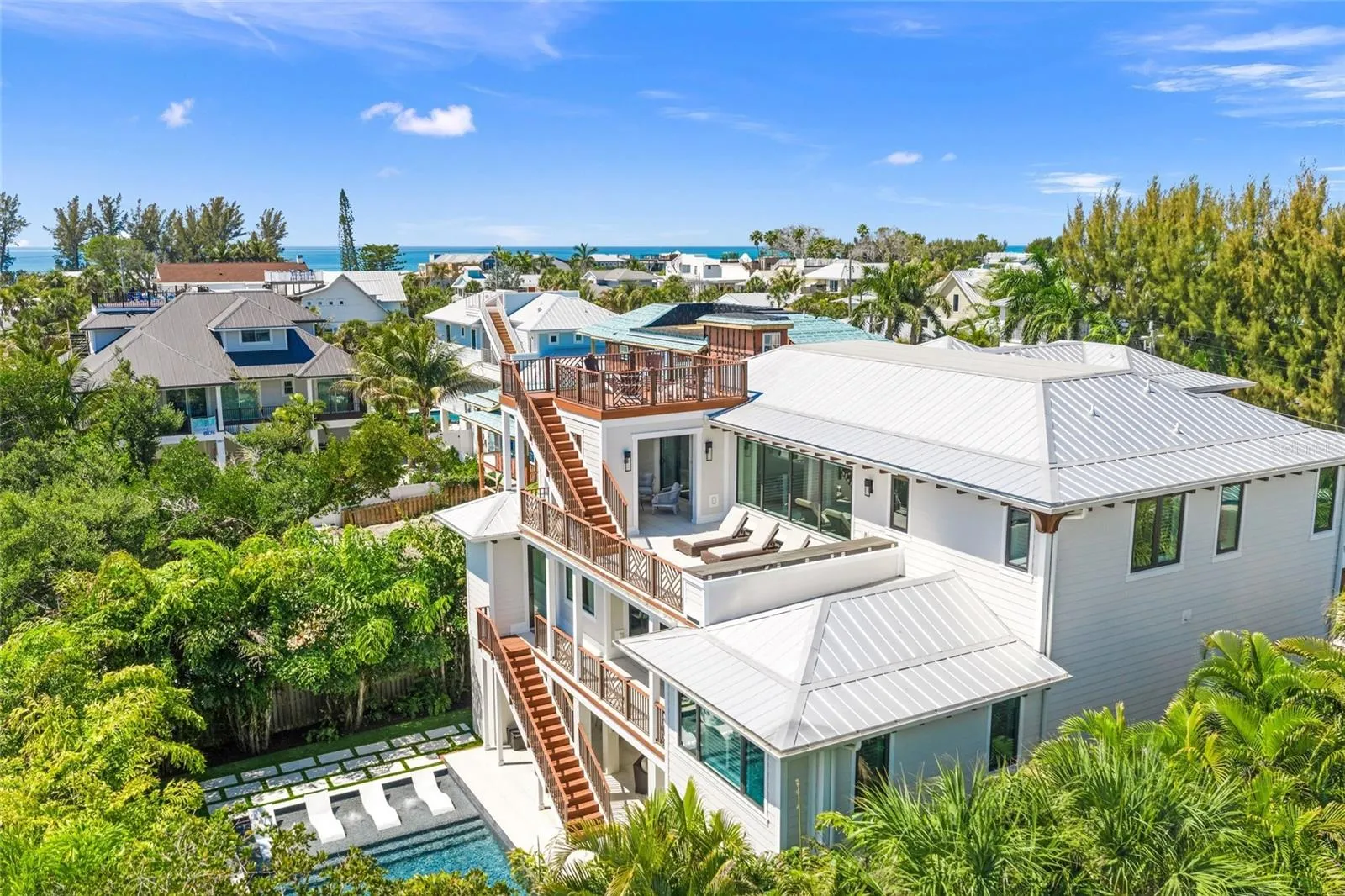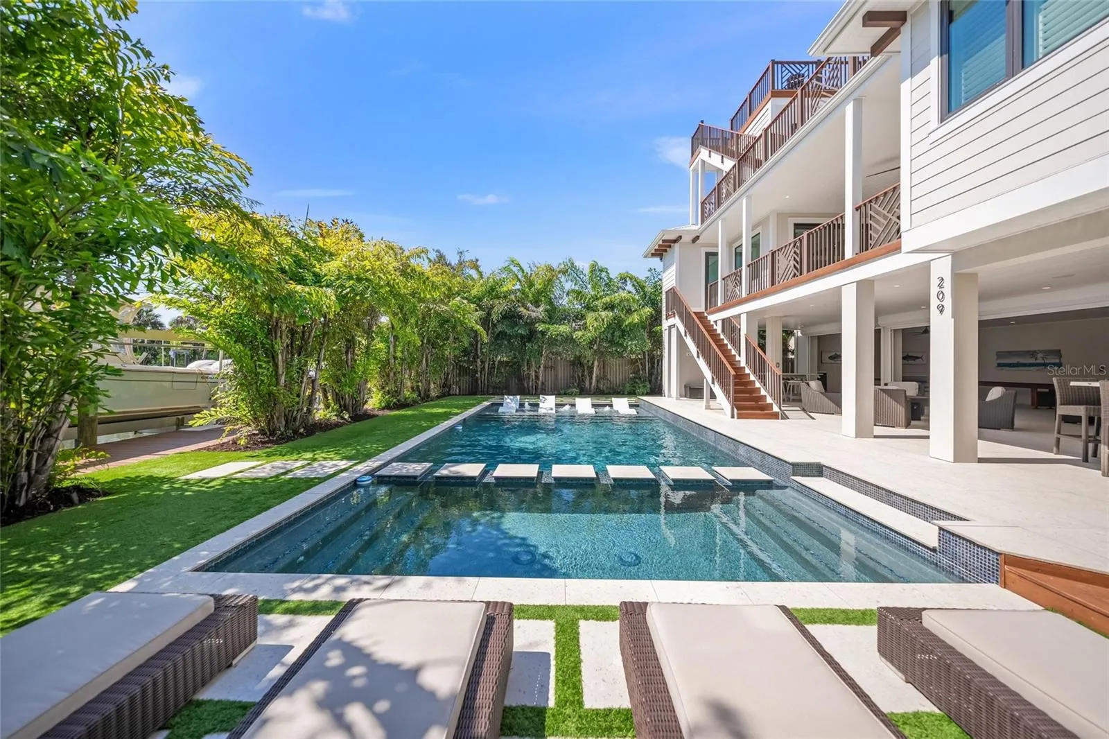 Discover coastal luxury at 209 Willow in the heart of Anna Maria Island on a very sought out quiet street. This stunning canal-front home offers the perfect blend of relaxed island living and high-end amenities, just 10 houses from the pristine sugar-sand beaches of the Gulf while situated on a canal, you get the best of both worlds! Step inside to this 6 bedroom, 6 bathroom, 2 half bath, thoughtfully designed home. This home has never been a rental, it is very well taken care of. The interior has just about every feature you can think of, natural light, soaring ceiling, impact slider doors/windows, wet bar, very large wine cooler, whole house generator for peace of mind, a water filtration system/softener, and a pressure booster. Each bedroom is spacious and has its own private en-suite bathroom ensuring your family and guests have their own privacy. Current owners are using the 6th bedroom as an office, or you can turn it into a bedroom. Kids will love the fun built-in bunk bed room, while still plenty of space to play too. If desired, an upstairs closet has washer/dryer hookups if you wanted an additional set on upper level. Relax on the rooftop deck with breathtaking views or unwind on the lower deck complete with comfortable loungers. The highlight is the resort-style backyard: a heated pool and spa with a beautiful Shellcrete bar accented by shimmering sea glass. Includes a refrigerator and grill. A screened-in covered downstairs area provides shaded comfort, while boaters will appreciate the private dock and lift right on the canal—perfect for quick access to the Intracoastal and Gulf waters. The epoxy-finished 3-car garage adds durability and style to your storage space. Big outdoor shower so you can rinse off after the sandy beach. Located on a quiet canal yet incredibly convenient, this home sits in one of Anna Maria’s most desirable spots. Enjoy easy access to world-class beaches, charming island dining, and everything the Florida Gulf Coast has to offer. Whether you’re seeking a primary residence, a vacation retreat, or an exceptional investment property, 209 Willow Avenue delivers island elegance with every modern comfort.