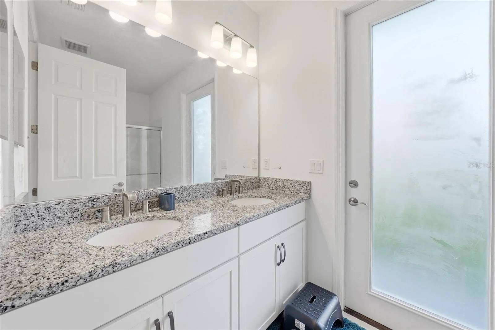 The remaining secondary bedrooms on are the far backside of the home, both complete with walk-in closets. There is a hall bathroom to share between the rooms and has an exterior door to the backyard.