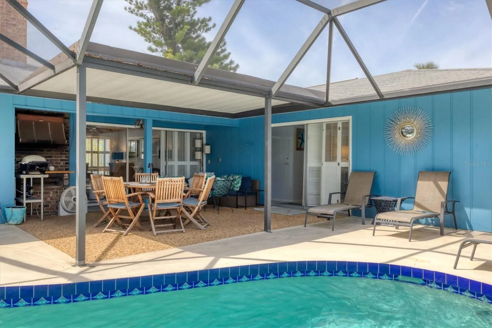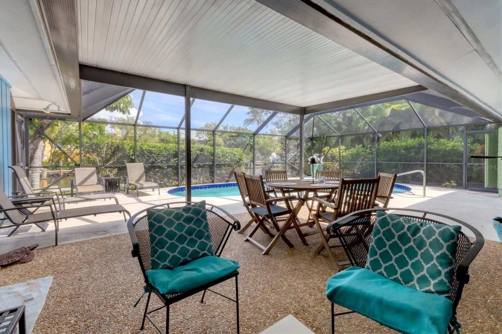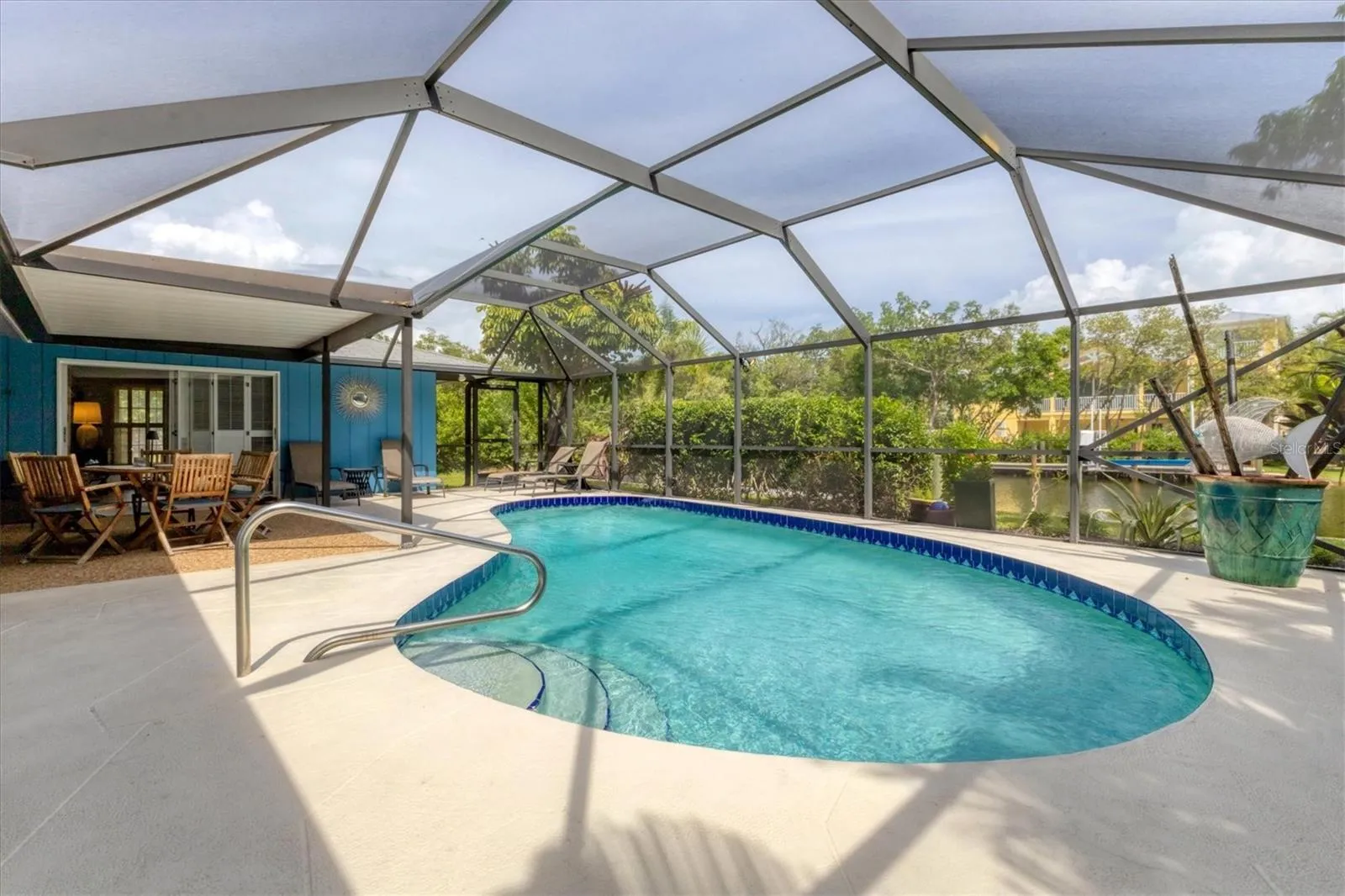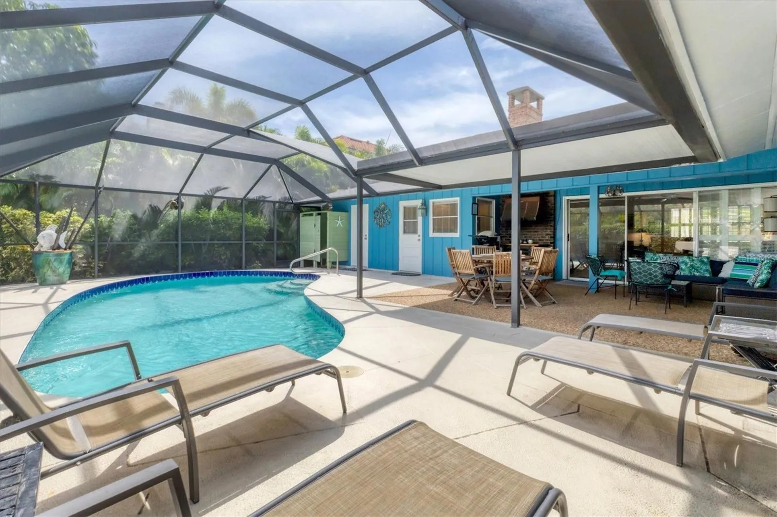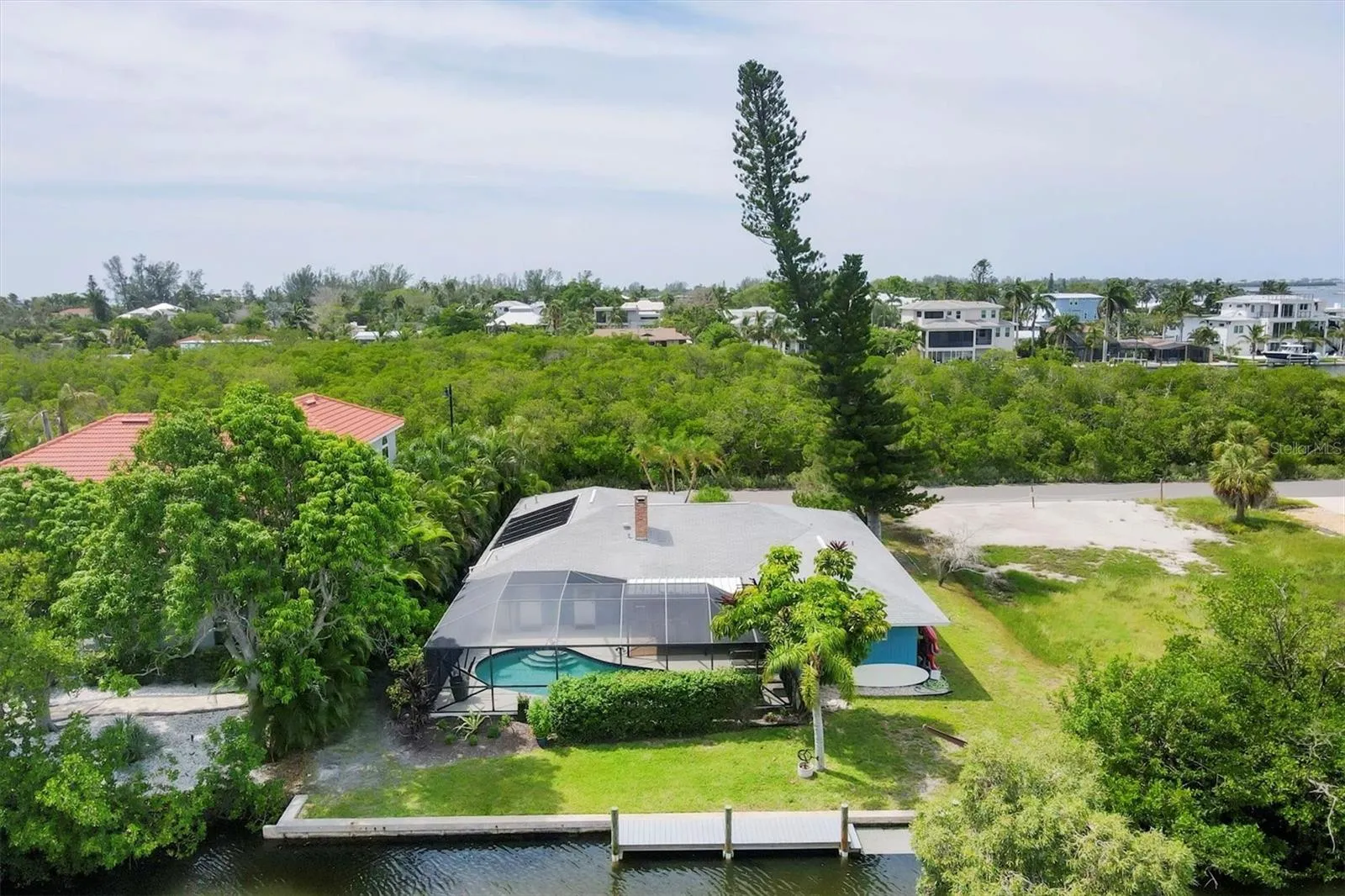 Welcome to your piece of Paradise! This beautiful canal front home located in the serene and picturesque Longboat Key. A charming mid-century style cottage is nestled in one of Longboat Key’s most private and serene settings. With homes only on one side of this peaceful street and protected wetlands on the other side, this property offers a rare sense of tranquility while being just steps away from the beach. This spacious 2 bedroom + bunkroom, 2.5 bathroom with outdoor shower residence offers 1,755 square feet of luxurious living space perfect for those seeking a tranquil waterfront lifestyle. The living area boasts an open floor plan with a cozy corner wood-burning fireplace that adds a warm touch, creating the perfect setting for snug evenings during the cooler winter months. The kitchen is equipped with newer appliances and offers plenty of space for culinary adventures. The master suite includes a cedar walk-in closet, an extra linen closet, and direct access to the pool area. In addition to the 2 bedrooms, there is a bonus bunk room—perfect for the little ones or teenagers to make their own retreat. The oversized one-car garage provides plenty of room for storage and vehicles. Enjoy the Florida sunshine in your private, caged pool overlooking the canal. The lanai includes an expansive pool deck offering ample covered outdoor living space with built-in brick barbecue, perfect for entertaining. Outdoor enthusiasts will also love the delightful outdoor shower, ideal for rinsing off after a day at the beach. For the boating enthusiasts the property features a two-tiered private dock with the lower level providing easy access to the water for kayaking. Proximity to a quiet beach via nearby public access allows you to enjoy the pristine beaches of Longboat Key. While you’ll feel worlds away in your private haven, the vibrant culture, dining, and amenities of Sarasota are just a short drive away, offering the best of both beachside living and city conveniences. This home is the perfect blend of coastal charm, modern functionality, and outdoor living, ready to become your dream island retreat. Don’t miss the opportunity to own this exceptional canal front home in Longboat Key. Schedule a viewing today and experience the best of Florida living!