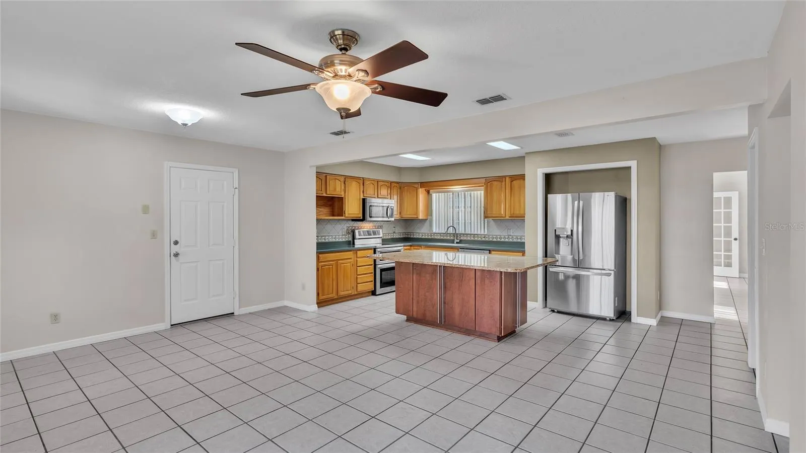 The expansive kitchen is a true centerpiece, featuring beautiful wood cabinetry, ample counter space, abundant storage, and newer appliances—perfect for everyday living and entertaining.