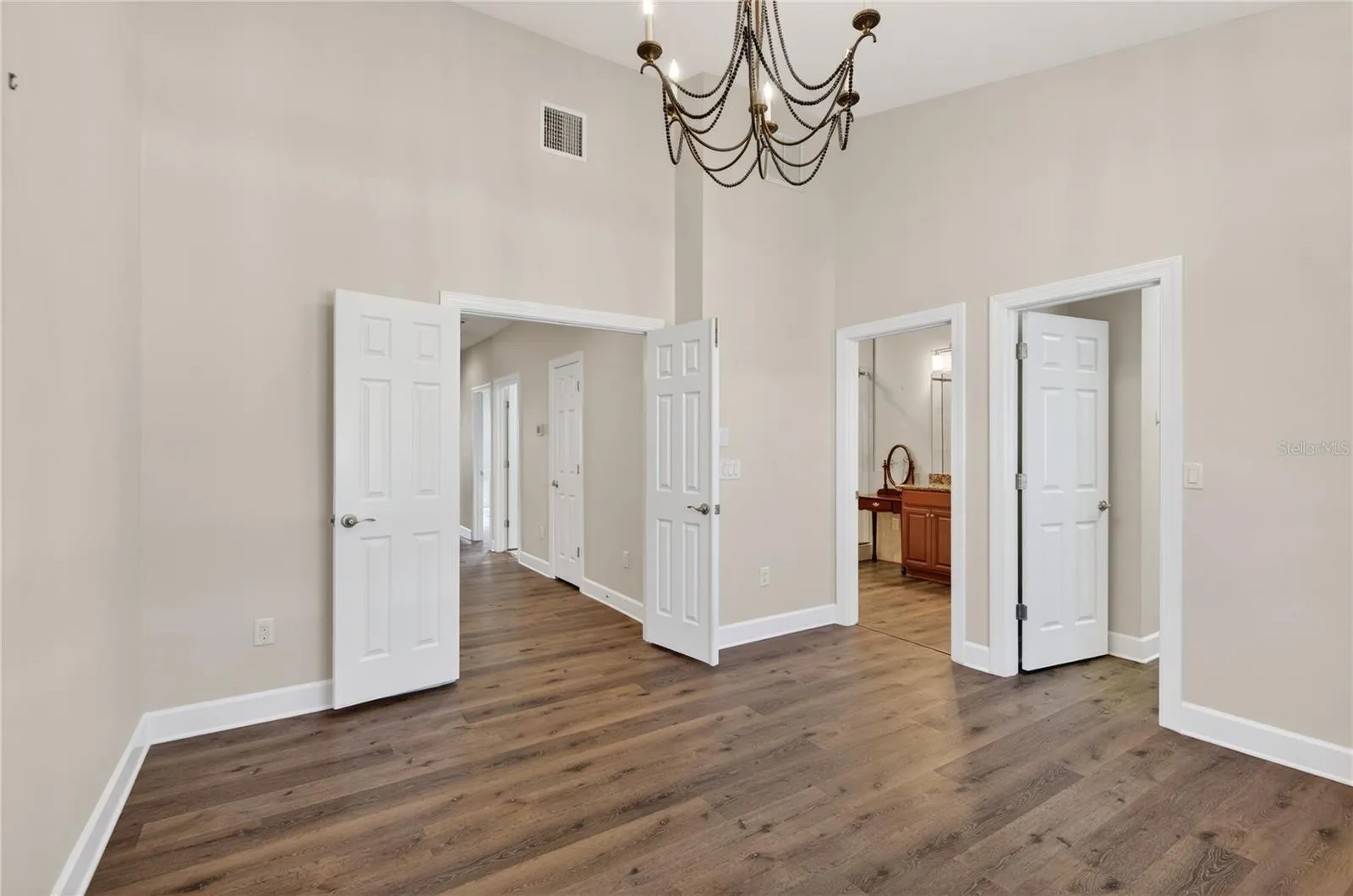 - Ceiling Fans(s), Crown Molding, Walk-In Closet(s), Eat-in Kitchen, Window Treatments, High Ceilings, Stone Counters, Solid Wood Cabinets, Solid Surface Counters, PrimaryBedroom Upstairs