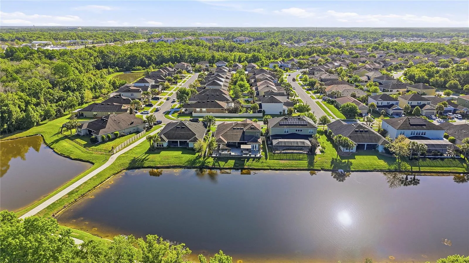 overlooking the pond, creating a space that feels like the epitome of relaxed Florida living.