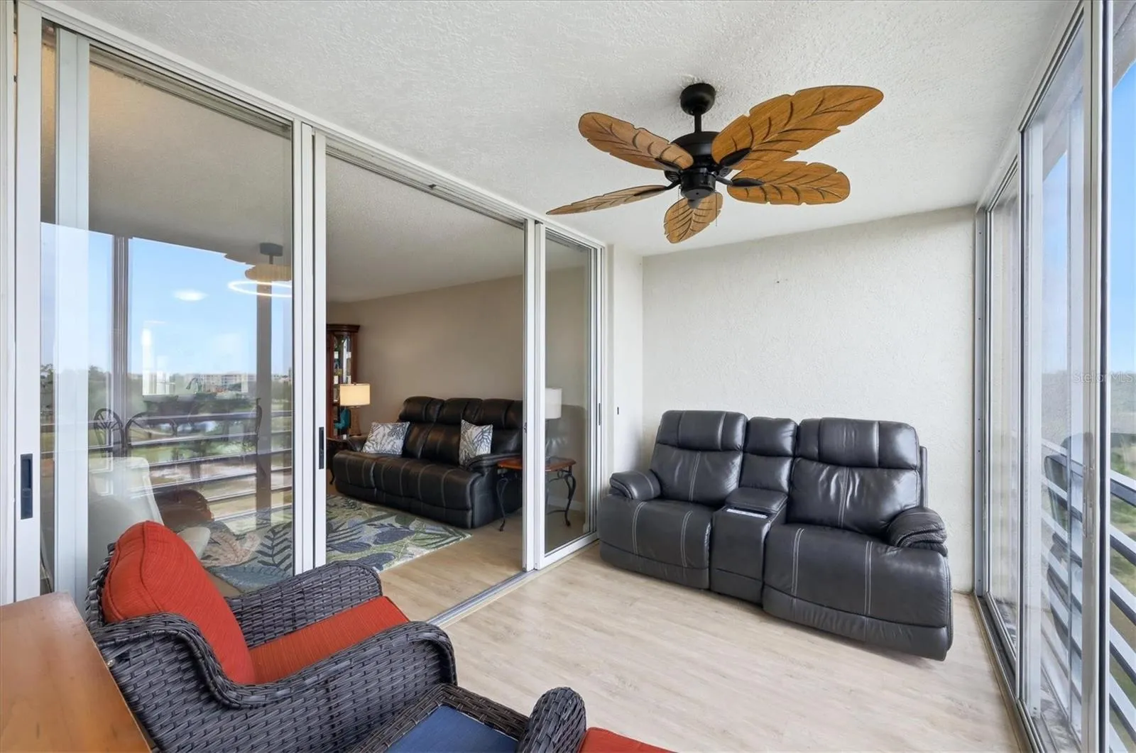 Come enjoy the Sweeping birds eye views of the Pinebrook Ironwood golf course and five water features from this 6th top floor condo in the Woods at Pinebrook. The Woods at Pinebrook is the newest association on the golf course, is efficiently managed, and there are currently no plans for special assessments. The location is excellent and there are no extra fees for living on the golf course. This unit sits directly across from the clubhouse pool. Amenities include access to a heated pool, exercise room, billiards, shuffleboard and additional facilities. This Bayhill floor plan features 2 bedrooms, 2 bathrooms, an eat-in kitchen with plenty of cabinets and a servers pass-through to the dining area. The kitchen appliances are in great shape and have been replaced as necessary. Ceramic tile appears in the foyer, kitchen, both bathrooms, and the laundry room. Vinyl plank flooring has been installed throughout the living and dining areas, as well as both bedrooms, complemented by 4-inch baseboards. The king size primary bedroom suite has a large 7×8 walk-in closet and it’s bath a large walk-in shower. The guest bedroom has its own bath with a combination tub shower. The 8×14 glass enclosed lanai offers the greatest golf course views overlooking the 15th fairway. The sliders recently enhanced with new wheels and locking mechanisms. The elevators have been replaced, and the stack pipe project has just been completed. You get one assigned covered carport #48 and a storage locker by the elevator. The A/C is replaced in 2024, a tankless instant hot water system new in 2022, plus the 7×7 indoor laundry room has a new washer as of 3/2026 and dryer new in 2017. Fresh paint, ceiling fans, lights and most fixtures all recently replaced. This location is highly convenient to shopping centers, medical services, Gt Bray Park, Robinsons Preserve, the SRQ airport and the stunning Gulf Coast beaches of renowned Anna Maria Island. Golf memberships are available or pay as you play.