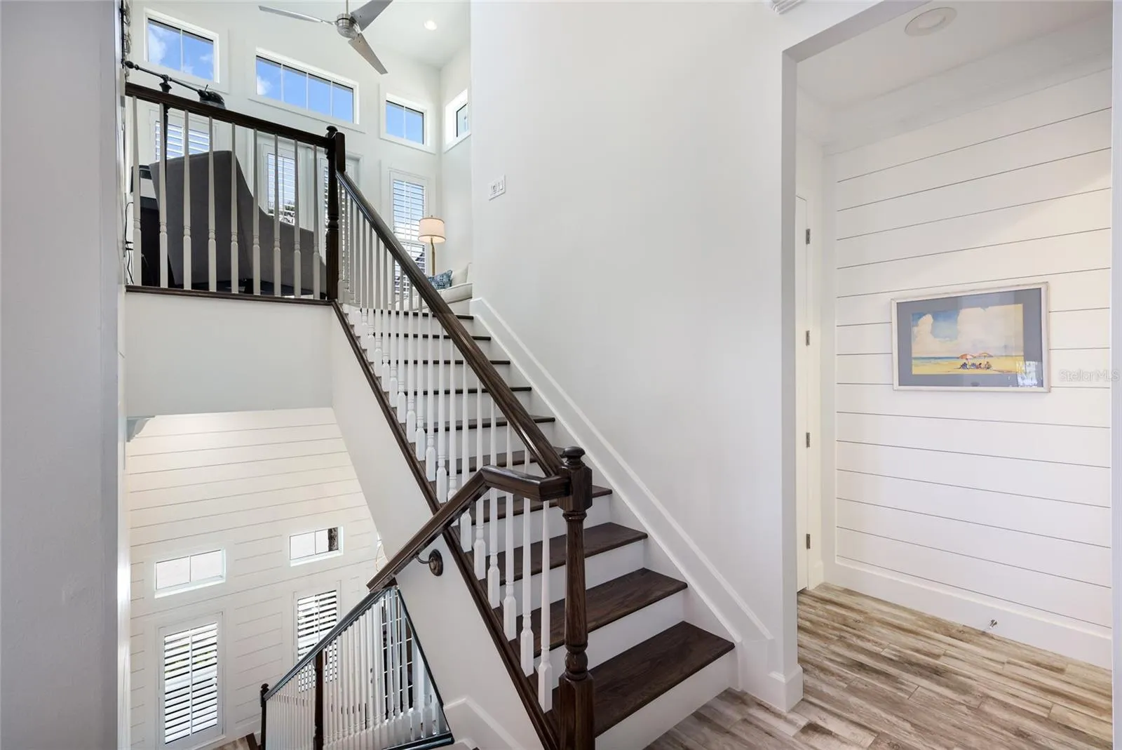 Step inside a coastal retreat where effortless elegance meets everyday comfort, beginning with a front porch that welcomes you into a light filled interior defined by soaring ceilings, crisp shiplap accents, and a seamless open concept design. Inside, a bright and airy foyer opens to the beautifully finished interiors, where natural light pours in and highlights the thoughtful design throughout. The main living space unfolds effortlessly, blending comfort and style with an open layout that connects the living room, wet bar with ice maker, dining area, and kitchen. The kitchen is as functional as it is beautiful, featuring a dedicated barista bar, ample cabinetry, generous counter space, and both casual eat in dining and a separate dining room, creating flexibility for everyday living or entertaining on any scale. Featuring 3BD/3BA, including two private ensuite retreats that provide a sense of comfort and privacy for both owners and guests. A versatile den adds even more flexibility, ideal for a home office, media room, or additional guest space. Upstairs, a truly special highlight awaits, a top floor room designed to capture sweeping views of the Intracoastal, offering a serene setting for morning coffee, sunset unwinding, or simply enjoying the ever changing waterfront scenery. Multiple balconies extend the living space outdoors, inviting in coastal breezes and creating peaceful spots to relax, dine, or entertain while taking in the surrounding beauty. Practicality meets convenience with an elevator, central vac system, two car garage and a layout that balances open gathering spaces with private retreats, making the home as livable as it is visually appealing. Beyond the home itself, Harbour Isles delivers a lifestyle that is second to none. Located just off the island, you will enjoy quick access to pristine beaches, boating , local dining, and boutique shopping, all while returning to a quiet, beautifully maintained community. Just steps away, the marina offers effortless access to the water, complete with Freedom Boat Club, the Compass Hotel, and waterfront restaurants that make dining and sunset cocktails part of your everyday routine. Residents also enjoy resort style amenities including sparkling pools, a kayak launch for exploring scenic waterways, a clubhouse, playground, on site dining, fitness center and lush landscaping that creates a true sense of escape all enveloped in this gated community. Here, every detail comes together to offer not just a home, but a refined coastal lifestyle where relaxation and recreation are always within reach.