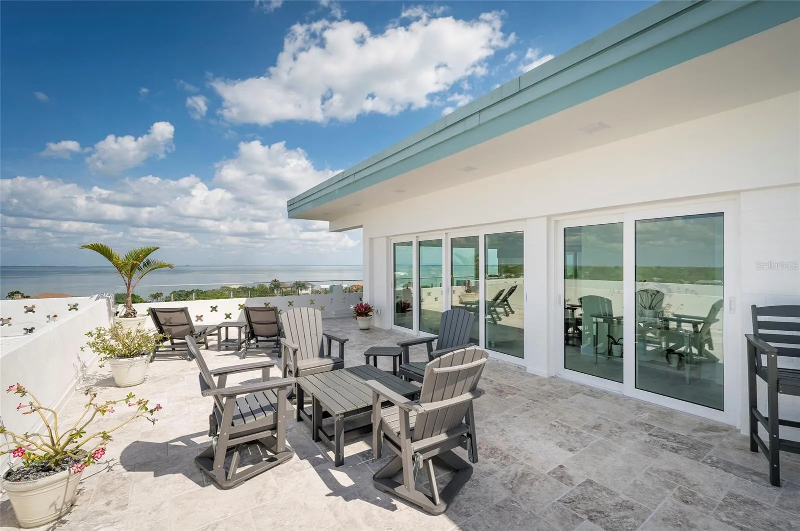 Outdoor living is equally impressive. The north side boasts an oversized open rooftop terrace—ideal for entertaining or relaxing under the Florida sky—while the south side features an enclosed terrace complete with a spacious wet bar and additional living area, all designed to maximize the stunning waterfront vistas.