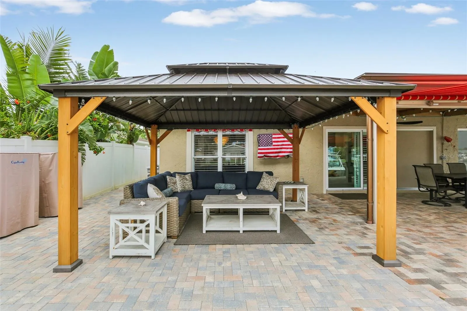 Under contract-accepting backup offers. Step into this meticulously updated 3-bedroom, 2-bath waterfront pool home ideally positioned at the convergence of three canals, offering direct, unobstructed access to Tampa Bay and the Gulf of Mexico. This sun-filled, solid-block residence spans over 1,700 square feet and showcases sweeping open-water views. Exceptional curb appeal welcomes you with a manicured lawn, irrigation system, and lush tropical landscaping framed by mature palm trees, while underground electrical service enhances both reliability and aesthetics. Inside, wood-look tile flooring runs throughout, combining the warmth of hardwood with the durability and low maintenance of tile. The remodeled open-concept living and dining spaces flow seamlessly into a beautifully updated kitchen featuring custom pendant lighting, solid wood cabinetry, granite countertops, stainless-steel appliances, and expansive water views that create a stunning backdrop to everyday living. Plantation-style shutters add timeless character, and both bathrooms have been thoughtfully renovated. The primary suite offers a bright, spa-inspired walk-in shower designed for comfort and style. Outdoors, your private waterfront retreat awaits with a saltwater pool equipped with a new pump and salt cell (2023), tranquil canal views, and a private dock with boat lift ready for effortless days on the water. The west-facing covered patio showcases a charming wood ceiling, ceiling fan, and electric/manual retractable awning—perfect for enjoying breathtaking sunsets and year-round entertaining. Major upgrades include a new HVAC system (2024), new roof (2022), hurricane-rated garage door with new opener, newer windows and pocketing sliding glass doors, newer seawall, tankless gas water heater, water softener, alarm system, indoor laundry room, and newly installed Frontier fiber-optic internet. Ideally located less than 10 minutes to vibrant downtown St. Petersburg by car or boat and approximately 25 minutes to Tampa International Airport, this exceptional waterfront residence offers the ultimate Florida lifestyle with nothing left to do but move in and enjoy