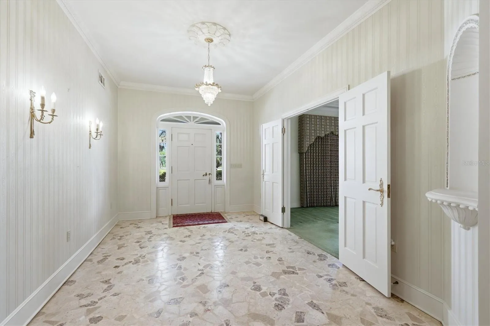 Rare opportunity in NW Bradenton. Stately Colonial Revival/Southern Brick Estate Home surrounded by majestic Oaks, Pines and Palm Trees. All on almost 3.5 acres! Two front porches with custom wrought iron adornments in and out! Special attention to detail include crown molding, wainscotting, tray embellished ceilings, brass doorknobs & hinges imported from England and many lighting fixtures with imported brass. When you enter the front door through the lovely foyer with imported marble floors and decorative niches. Boasting 5745 sf. Under roof, built in the 70’s with great care and intention. Extremely large rooms, Formal Living and separate Formal Dining room that can comfortably it 12 or more. Massive family room large enough to accommodate a pool table with wood burning fireplace. Also, on the first floor there is an office that could also be a bedroom. The Owners Suite has walk-in closets and ensuite featuring marble counters and vanity spaces. Separate laundry room, that can lend to a craft room. The kitchen faces pool area opening out to patio/porch area. It is adjacent to both family and dining rooms. There is walk-in pantry and butler pantry area that can accommodate tablecloths and entertainment supplies. Many closets and plenty of storage throughout the home. A two-story lanai area behind home that leads out to 40 x 20 pool with a two-story pool cage that has been recently replaced. The second floor leads to four bedrooms with extra walk-in storage area and two full baths. Two bedrooms face out to expansive yard with balconies that lead out to porch. Two bedrooms face out to backyard and pool with another balcony that overlooks the pool area and leads down wrought iron spiral staircase. Full house central vacuum. This property is made for family gatherings and entertainment! Oversized two car garage. All in a park like setting. Many options for this property, bring your imagination! The location is phenomenal. Sought after area of Bradenton adjacent to DeSoto Memorial Park, minutes to famous Anna Maria Beaches. Restaurants and shopping.