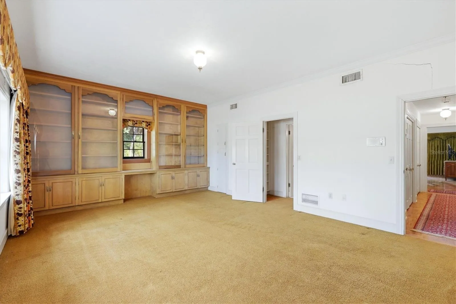 - Crown Molding, Thermostat, Walk-In Closet(s), Living Room/Dining Room Combo, Primary Bedroom Main Floor, Solid Wood Cabinets, Central Vaccum