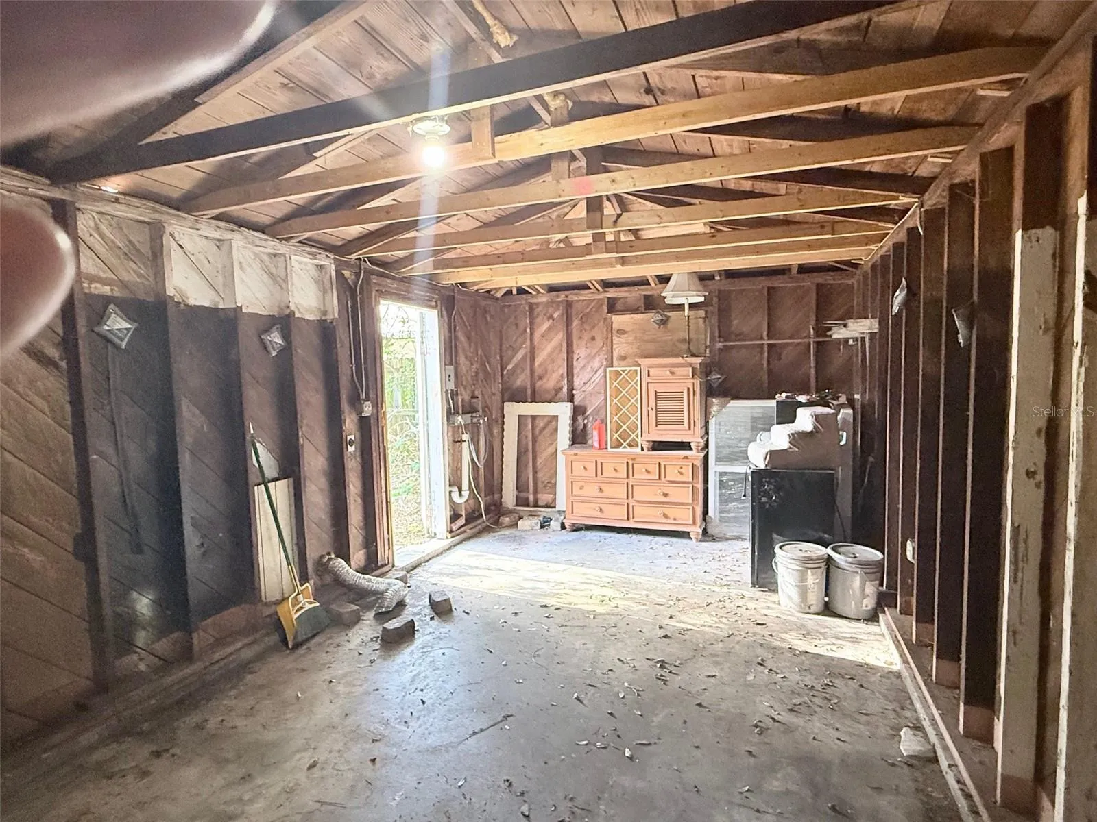 Nice 2 bedroom 1 bath in St Pete. Home has a large living room with wood paneling on walls and ceiling, there is an open kitchen and 2 large bedrooms. The home has a bonus room off of the kitchen that would be a great dining area or home office. The property has a large fenced yard with a large storage garage that has washer/dryer hook ups. The property is in close proximity to I-275, Downtown St Pete and The Sunshine Skyway.