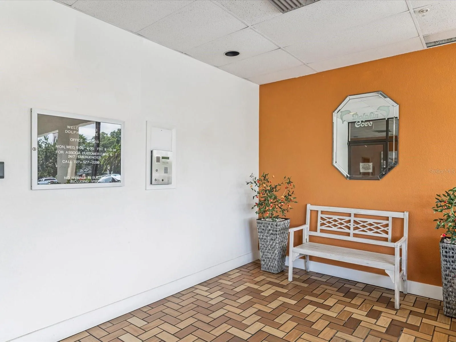 - Head West toward the beach on SR 60 across the Memorial Causeway bridge. Turn onto Island Way at the light and go past Publix. Turn left onto Dory and at the Stop sign you'll see Dolphin Cove just ahead to the right. It's across from St Brendan's. Park in a guest spot in the open lot in front.