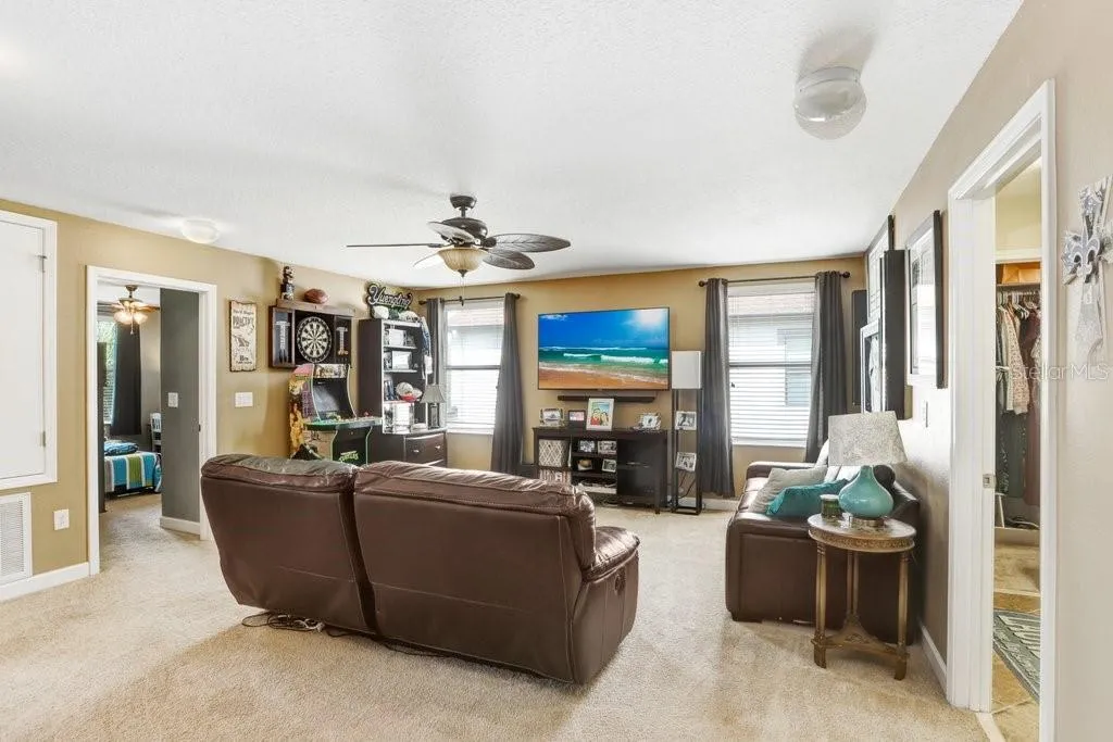 This stunning 4-bedroom, 2.5-bathroom, 2-car garage home, boasts 2,919 square feet of spacious, two-story living in New Tampa’s exclusive K-Bar Ranch. This home is in the gated community of Heron Preserve, with a tranquil setting with pond & conservation views. Upon entering the home, you are greeted with a spacious Foyer. A separate Dining Room [currently set up as a home office] is the perfect place for entertaining but also features a trendy barn door for separation. Step through the Butler’s pantry into the gourmet kitchen featuring granite counters, 42″ maple cabinets, recessed lighting, a generous walk-in pantry, stainless steel appliances, and a large island with a double-well sink, dishwasher, and ample seating space. Not only are the kitchen, dining and family rooms seamlessly combined with an open concept design but they you’ll enjoy peaceful conservation views from the Great Room. Also downstairs you’ll find a half bath with an exit to the Patio and a perfect drop zone for all your belongings and/or home management office. Step through the sliding glass doors to the BRAND NEW covered lanai and extended screened-in patio with upgraded panoramic screens featuring brick pavers, a built-in kitchen, and spacious fenced-in back yard with pond views. Outdoor Kitchen includes Grill, Prep Sink, 2 drawers & pull outs. And don’t forget the custom Sonos Sound System that extends from the lanai through the living room and up to the Primary Suite to fill the home with music, game day stats + the outdoor TV stays with the home! Seller will also leave the 6 poly chairs at the outdoor bar area. On the second floor awaits the primary bedroom fit for relaxation with its own en-suite featuring a garden tub, dual vanities and water closet with direct entry to the L-shaped, oversized walk-in closet with custom built-ins. All secondary bedrooms are generously sized with one room featuring a spacious walk-in closet and the other two complete with custom built-in closets. All upstairs rooms surround a sizable, cozy loft, perfect for a game space or movie area. Recent Upgrades: Upstairs & Downstairs HVACs 2023; Outdoor Paint 2022; Extended Lanai/Outdoor Kitchen 2024; Garbage Disposal 2023; Gutters 2022; Refrigerator 2022; Dishwasher 2020. The home is centrally located, just steps away from the community dog park and minutes from a large brick-pavered community pool, wet bar, cabana area, two playgrounds, basketball court, tennis court, fenced dog park, and gated entrance, all amidst breathtaking natural scenery. Don’t miss out on this exceptional opportunity to own a high-quality home in one of Tampa’s most coveted locations. Ask for the Property Information & Feature Sheet.