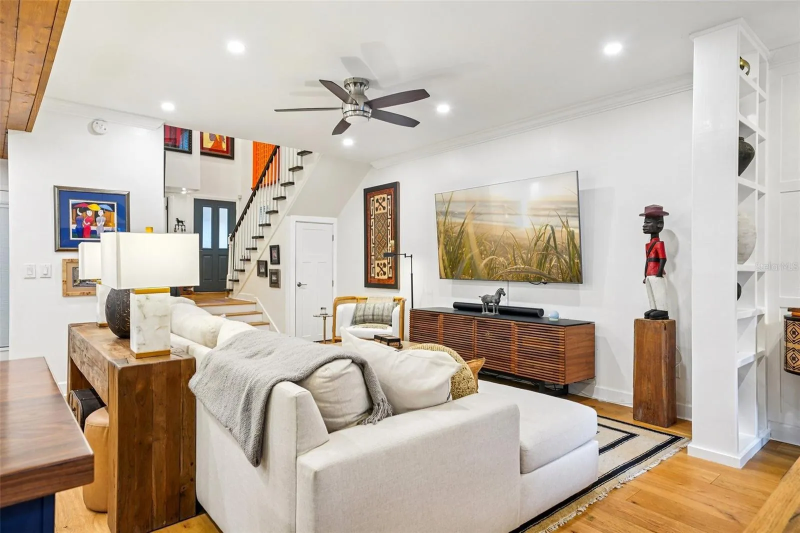 The living and dining areas are defined by elegant wainscoting and a custom-installed half-display wall, while specialized tilted spotlighting throughout the main floor and master bedroom ensures your artwork is always the center of attention. Practicality meets luxury with a newly created storage closet tucked under the stairs and a renovated powder room featuring wainscoting, a new vanity, and upgraded fixtures. For peace of mind, the property also includes a premium water softener system installed in December 2025.