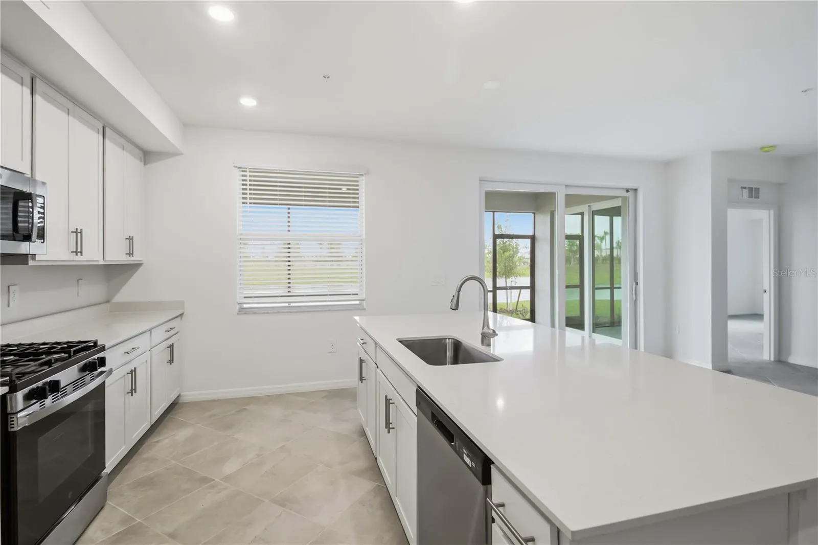 Welcome to luxury living in Calusa Country Club, where golf course lifestyle meets effortless first-floor convenience. This beautifully designed Arrowhead coach home offers 1,741 square feet of thoughtfully designed living space and comes with a golf membership included, making it the perfect opportunity to enjoy resort-style living from day one. This single-story residence features a modern open-concept layout, seamlessly connecting the dining area, kitchen, and spacious living room—ideal for both entertaining and everyday comfort. Large sliding glass doors lead to a covered lanai, creating the perfect indoor-outdoor setting to relax and enjoy the Florida lifestyle.