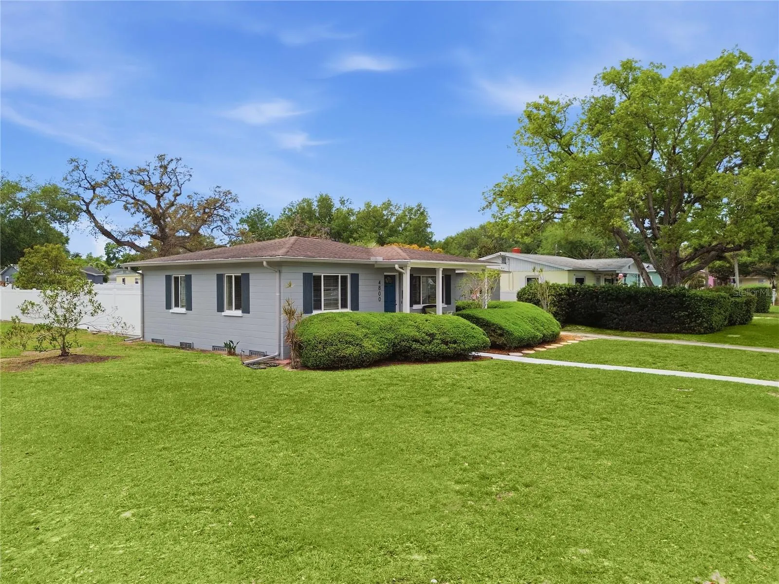 Under contract-accepting backup offers. Discover timeless charm in this delightful 2-bedroom, 1-bath home located on a highly sought-after expansive 10,000+ sq. ft. corner lot, perfectly situated in the heart of St. Petersburg. This move-in-ready gem has a ton of natural light pouring inside from the abundance of windows highlighting gleaming wood floors. The living space flows effortlessly into the updated kitchen, complete with a breakfast bar, granite countertops, new cabinetry, and stainless-steel appliances—ideal for entertaining or enjoying your morning coffee. The Florida room located off the kitchen, is a great flex space with many possible functions. The two bedrooms are generously sized and can accommodate your furniture needs. This home has been lovingly cared for with many recent updates. The Hot water heater was replaced in 2023, HVAC system in 2020, Garage door in 2018, and the roof is circa 2016. The home was tented last year and comes with a transferable warranty. The expansive backyard offers a covered lanai, outdoor shower and is fully fenced with vinyl fencing. The irrigation system is on well. Situated outside of a flood zone in a Non-Evacuation Zone, offering security and peace of mind. This home is just minutes from shopping, dining, and entertainment, and you’ll be soaking up the sun at the beach in 15 minutes or less. This property delivers convenience as well as opportunity. Whether you are looking for your next home or you are an Investor. Enjoy as is, embrace the possibility of adding an ADU, building your new dream home or build to sell. You decide! This property offers many options.
