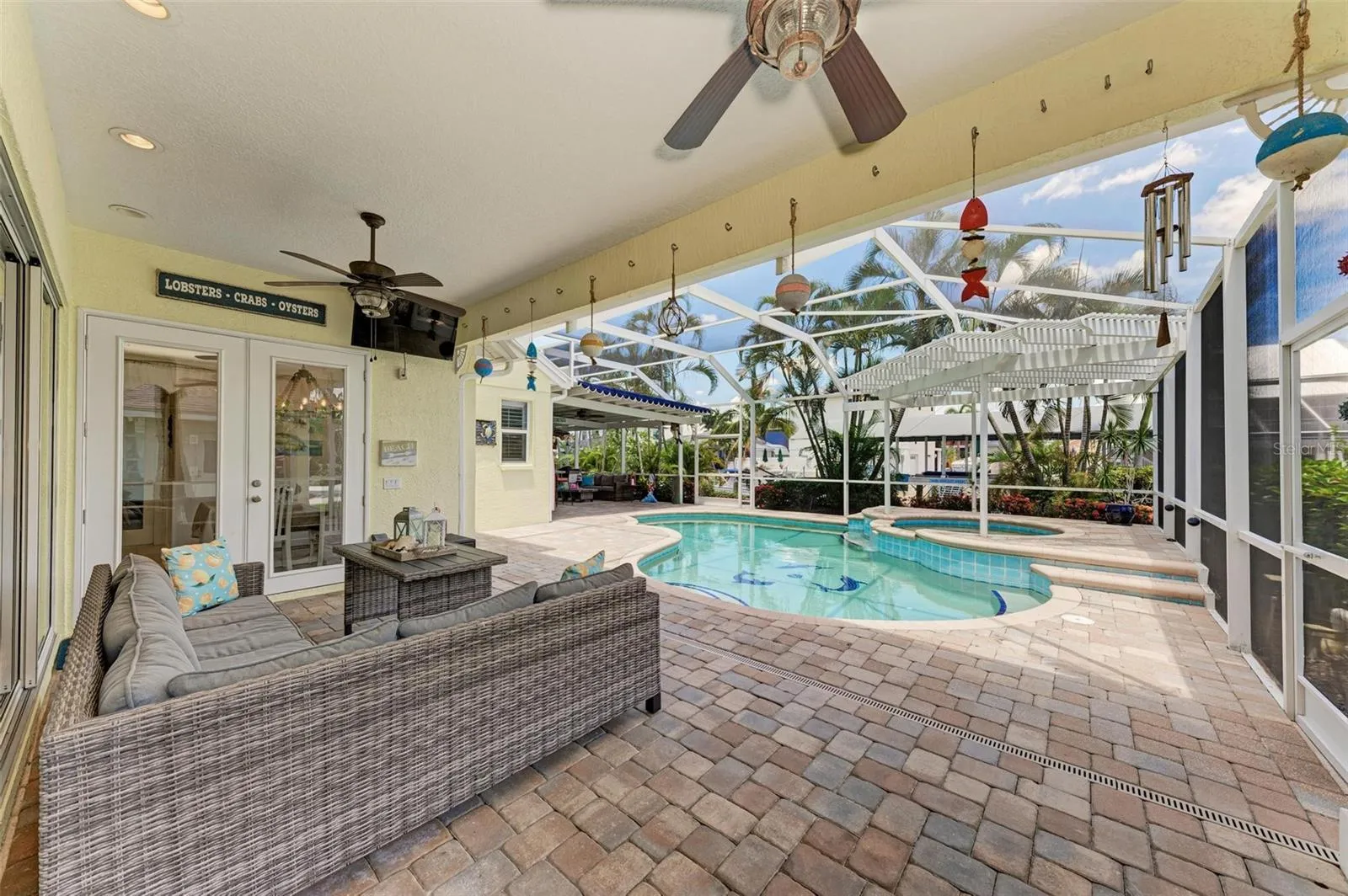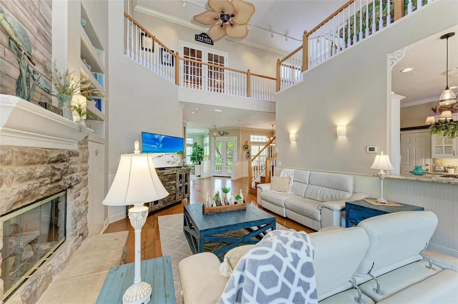 STUNNING 2 STORY HOME LOCATED ON A DIRECT ACCESS SALTWATER CANAL, OFFERING OVER 4200 SQ FT OF SPACIOUS LIVING. WITH 3 BEDROOMS, 3 1/2 BATHS PLUS OFFICE AND A LARGE THEATRE ROOM, THIS HOME IS DESIGNED FOR BOTH LUXURY AND FUNCTIONALITY. WATER ENTHUSIASTS WILL APPRECIATE THE 16000LB COVERED BOAT LIFT, AND DOCK THAT SITS ON A SALTWATER CANAL AND HAS EASY ACCESS TO THE MANATEE RIVER/GULF OF MEXICO. THE PAVER LANAI BOASTS A LARGE SCREENED OUTDOOR LIVING SPACE, COMPLETE WITH A SALT-WATER-HEATED POOL AND SPA ADORNED WITH LIGHTS. THE OUTDOOR KITCHEN AND 2ND WET BAR AREA ARE EQUIPPED WITH A GRILL, WINE FRIDGE, SMALL FRIDGE AND HAVE THE IDEAL SETTING FOR ENTERTAINING WHILE ENJOYING THE VIEWS. DON’T FORGET TO INDULGE IN THE OUTDOOR SHOWER, ADDING TO THE RESORT-LIKE EXPERIENCE. STEP INSIDE AND BE CAPTIVATED BY THE 30FT HIGH CEILINGS, NATURAL LIGHT AND A MYRIAD OF BONUS SPACES. A THEATRE ROOM, PERFECT FOR ENJOYING YOUR FAVORITE MOVIES IN STYLE. FOR THOSE WITH A PASSION FOR CRAFTSMANSHIP, A PRIVATE WORKSHOP/ BONUS ROOM AWAITS. ADDITIONAL HIGHLIGHTS INCLUDE A BONUS 3RD FLOOR ARTIST SPACE OR JUST A FLEX ROOM, AN UPSTAIRS LOFT WITH WET BAR AND 2ND OFFICE/LIVING SPACE. EACH SPACIOUS BEDROOM ON THE 2ND FLOOR BOASTS ITS OWN EN SUITE BATH AND WALK IN CLOSETS. THE MAIN FLOOR MASTER BDR OFFERS A TRANQUIL RETREAT WITH 2 WALK IN CLOSETS AND A SEATING AREA. INDULGE IN THE EXPANSIVE MASTER BATH SPA, COMPLETE WITH A SUNKEN TUB, SEPARATE SHOWER AND DUAL SINKS. THE GOURMET KITCHEN FEATURES A BUILT IN OVEN, A GAS COOKTOP IN THE ISLAND, STAINLESS STEEL APPLIANCES AND GRANITE COUNTERS. ENJOY MEALS IN THE EAT IN DINETTE SPACE, BREAKFAST BAR OR THE FORMAL DINING ROOM. THERE IS A BUILT IN DESK AREA ADJOINING THE KITCHEN AND DINING SPACES AS WELL. THE 1ST FLOOR LAUNDRY AREA ALSO HAS PLENTY OF ROOM. THE SMART HOME LIGHTING SYSTEM AND BRAND NEW AC UNITS ENHANCE CONVENIENCE AND EFFICIENCY. DON’T MISS THE OPPORTUNITY TO MAKE THIS EXQUISITE CANAL FRONT PROPERTY YOUR DREAM HOME, OFFERING A PERFECT BLEND OF LUXURY, FUNCTIONALITY AND FLORIDA WATERFRONT LIVING. IN THE COMMUNITY, ENJOY THE TENNIS COURTS, KAYAK LAUNCH, WALKING TRAILS AND PARK ALL OFF AMERICA’S CUP FOR YOUR ENJOYMENT. THE GATED, PRIVATE BOAT LAUNCH IS VERY NEAR THE HOME, ASK AGENTS FOR DETAILS. All measurements are approx. Buyer or buyers agent to verify.