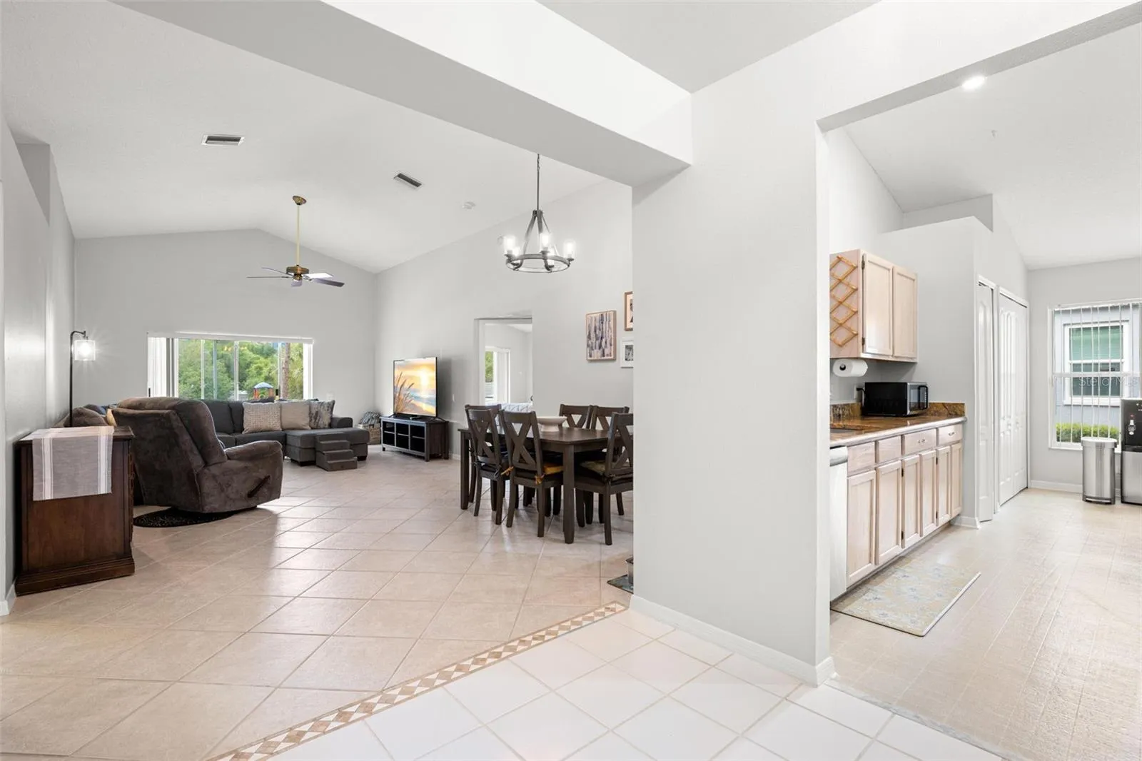 - Ceiling Fans(s), Open Floorplan, Living Room/Dining Room Combo, High Ceilings, Vaulted Ceiling(s)