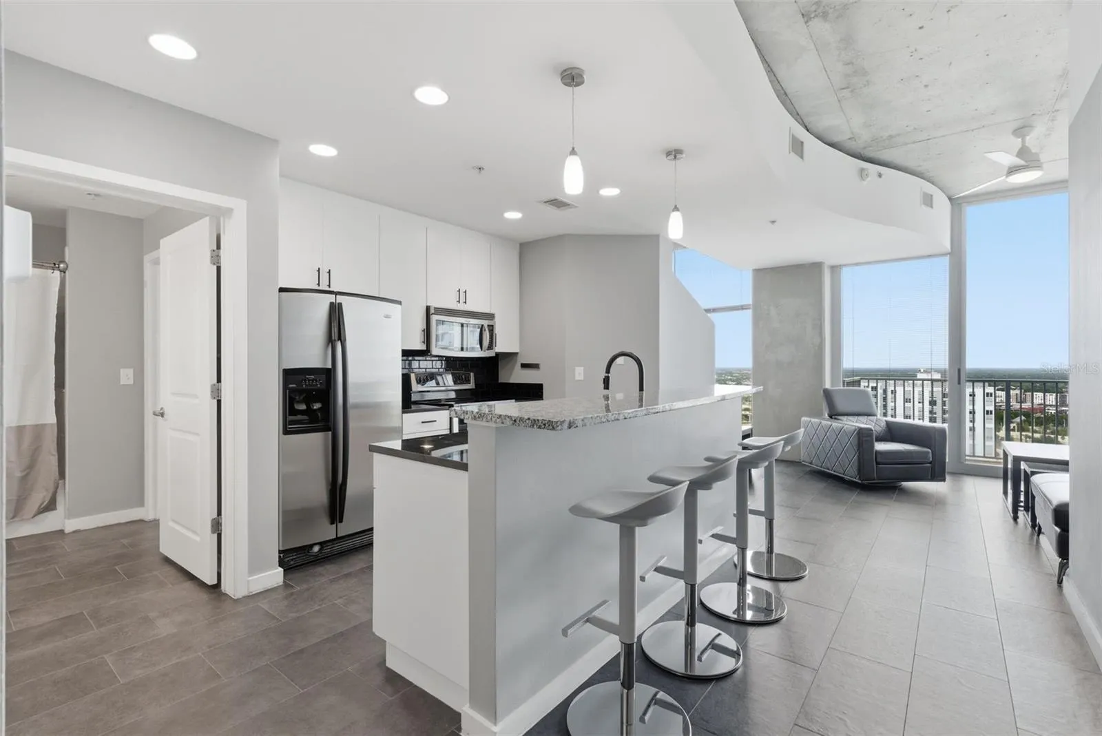Downtown living at it’s finest! Come and see what easy maintenance City living has to offer in the SkyPoint condominiums. This modern condo has 1 bedroom, 1 bathroom, and a private balcony to enjoy priceless views of Downtown Tampa and Florida sunsets from the skyline. Step inside into an open living space, with floor to ceiling windows for panoramic views and updated tile flooring throughout. The remodeled kitchen has many appealing features, including granite countertops, stainless steel appliances, tiled backsplash, and a kitchen island with seating space. The primary suite has a custom closet system and an updated ensuite bathroom. *HVAC replaced 2025* SkyPoint offers refined living with 24/7 concierge, rooftop saltwater pool & spa, fitness centers, theater room, and resident lounges. All while centrally located at the heart of Tampa within close proximity to Ybor City, Channelside, The Florida Aquarium, Curtis Hixon Park, Tampa Riverwalk, the Straz Center, Tampa Museum of Art, Amalie Arena, Armature Works, and an abundance of options for Cafes, Coffee shops, and Restaurants. Don’t miss out on this opportunity! Call today to schedule a private viewing.