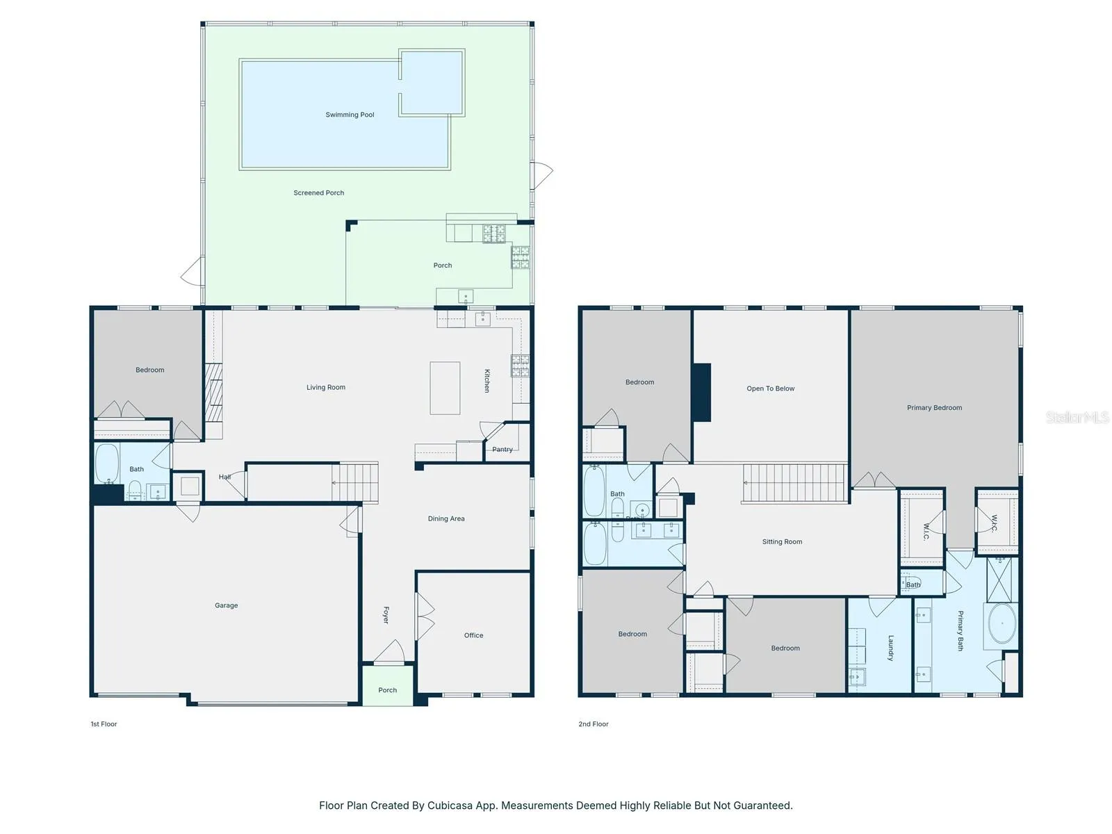 Prepare to be captivated by this stunning Spanish Revival home in the premier community of Terra Bella, offering impeccable upgrades and a bright, open layout with soaring ceilings throughout. Built in 2016 and meticulously maintained, this five-bedroom, four-bath home feels like new and features a dedicated office and versatile upstairs loft, perfectly designed for comfortable living and effortless entertaining. The main living area showcases a dramatic stone wall feature rising to the second story, anchoring an electric fireplace with a built-in media center for a striking architectural focal point. The kitchen is both functional and inviting with stainless steel appliances, a gas range, double oven, large center island, and spacious corner pantry. The primary suite serves as a private retreat with a tray ceiling, dual walk-in closets, and a spa-like bathroom complete with a soaking tub, separate shower, and rainfall showerhead. Step outside to your screened-in oasis featuring a heated saltwater pool and spa completed in 2022, surrounded by manicured landscaping and complemented by a fully equipped outdoor kitchen and Sonos sound system with seamless indoor and outdoor integration. Additional highlights include a three-car garage, irrigation system, gutters added in 2022, a whole-house water softener and filtration system, and prewiring for a Tesla charger, along with major updates such as upstairs AC (2021), downstairs AC (2025), UV air filtration (2025), freshly cleaned ductwork, and added security with outdoor cameras and a video doorbell. Residents enjoy Terra Bella’s community pool and splash pad with a low HOA of just $70 per month, along with convenient access to nearby favorites like Land O’ Lakes Heritage Park, Cypress Creek Preserve, and Old McMicky’s Farm, making this home a true turnkey Florida oasis.