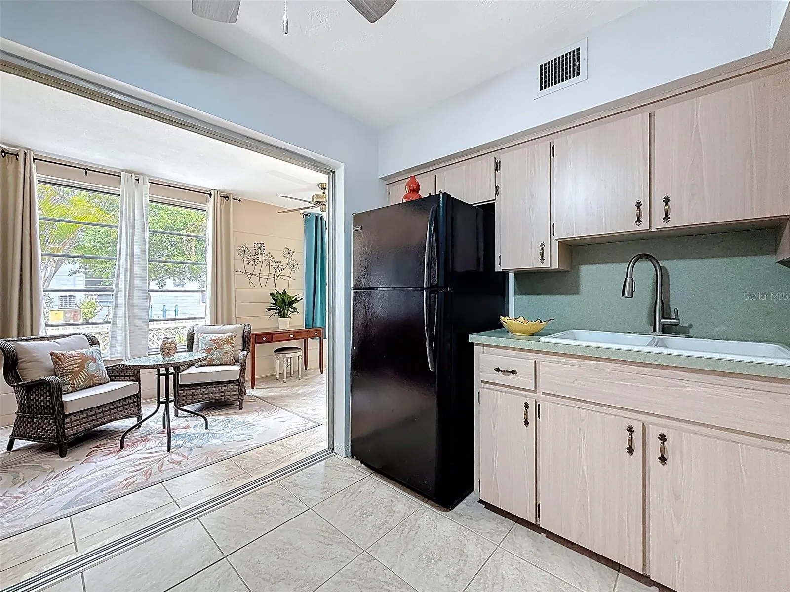 WOW- Ground floor living! Welcome to this meticulously turnkey fully furnished spacious 2-bedroom, 1 bath, pet friendly 55+ community. This condo is filled with abundant light, lots of storage, and also has indoor laundry. A designated parking space is conveniently situated just steps from the front door. As you walk up to your unit there is a lushly paved landscaped private patio offering a great place to capture morning and evening breezes.. Freshly painted interior with newer vinyl flooring, new bathroom vanity & cabinet, and 2 new ceiling fans. Florida room patio furniture does not convey. Conveniently located close to grocery stores, banking, shopping malls, medical facilities, world famous beaches and airports. Call for your private showing!!
