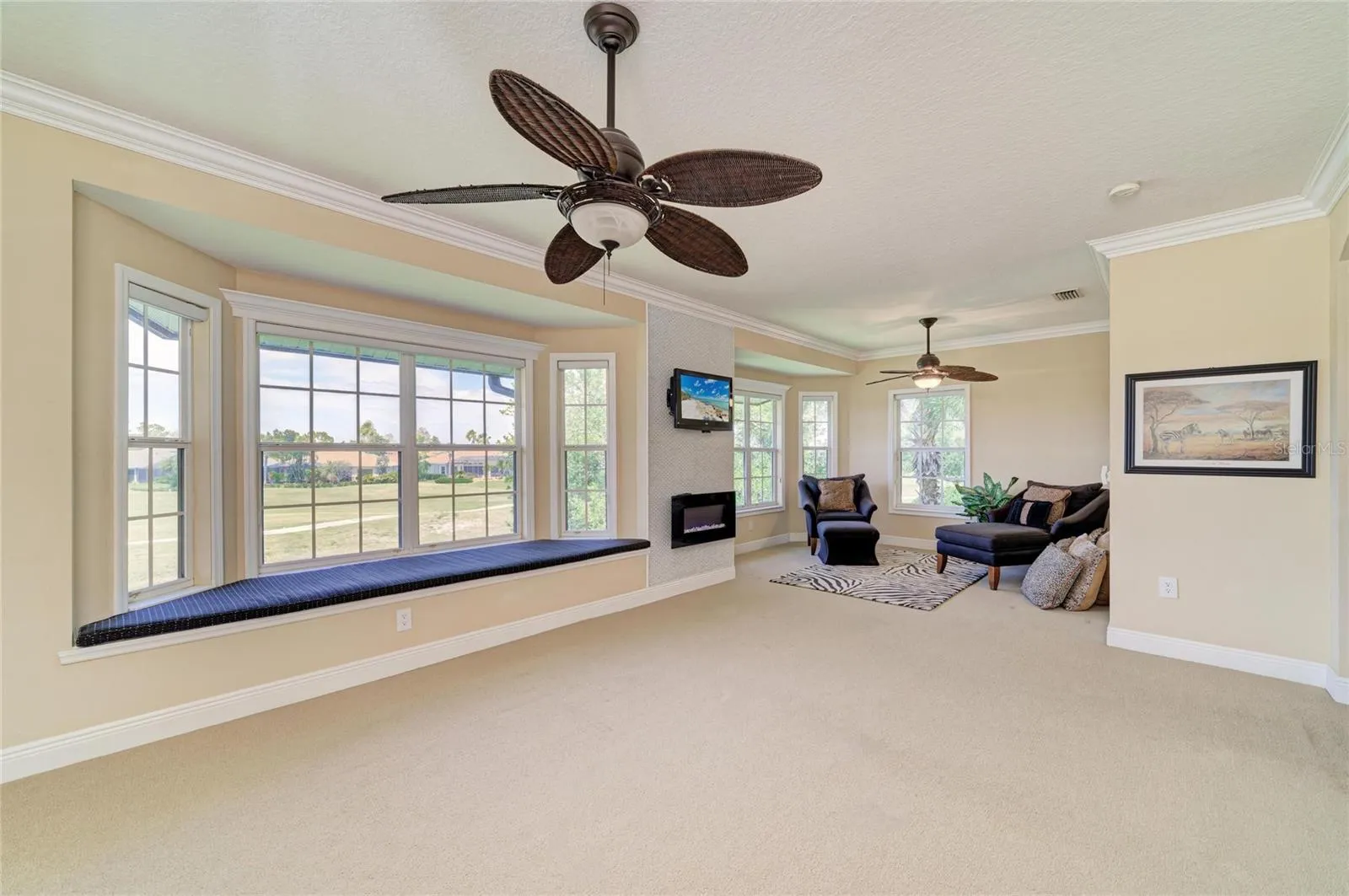 - Ceiling Fans(s), Crown Molding, Open Floorplan, Walk-In Closet(s), Eat-in Kitchen, Window Treatments, High Ceilings, Solid Surface Counters, Chair Rail
