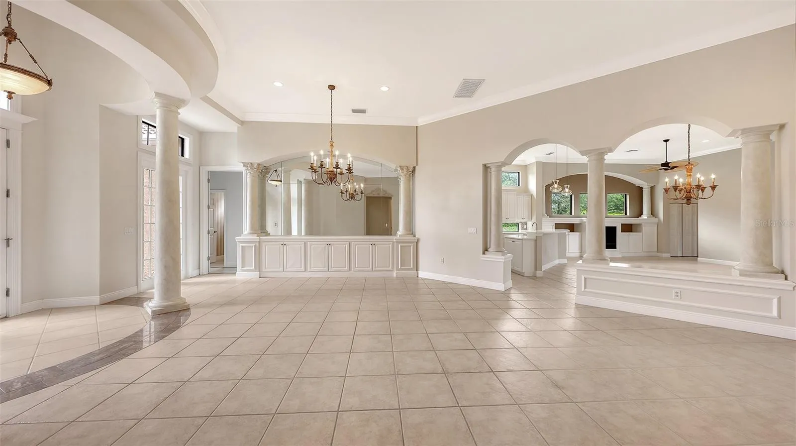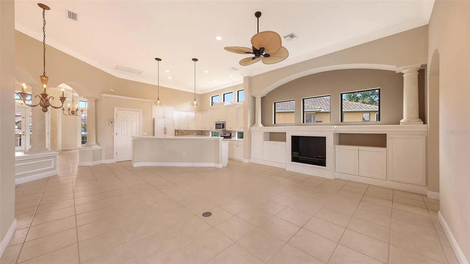 - Ceiling Fans(s), Crown Molding, Open Floorplan, Thermostat, Walk-In Closet(s), Eat-in Kitchen, Primary Bedroom Main Floor, Window Treatments, Stone Counters, Solid Surface Counters, Cathedral Ceiling(s), Tray Ceiling(s), Wet Bar, Built-in Features