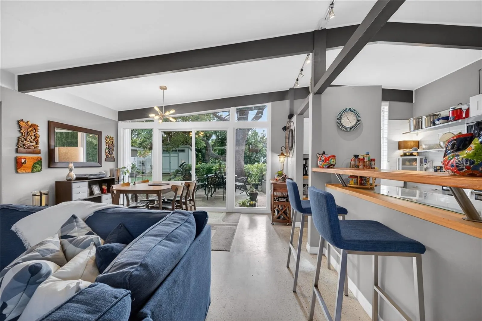 Inside, the home continues to impress with fresh interior and exterior paint, a newer roof, and timeless mid century character. The layout is both functional and inviting, featuring thoughtful upgrades such as an InSinkErator garbage disposal, ample storage throughout, and a natural flow that enhances the connection between interior spaces and the surrounding greenery.