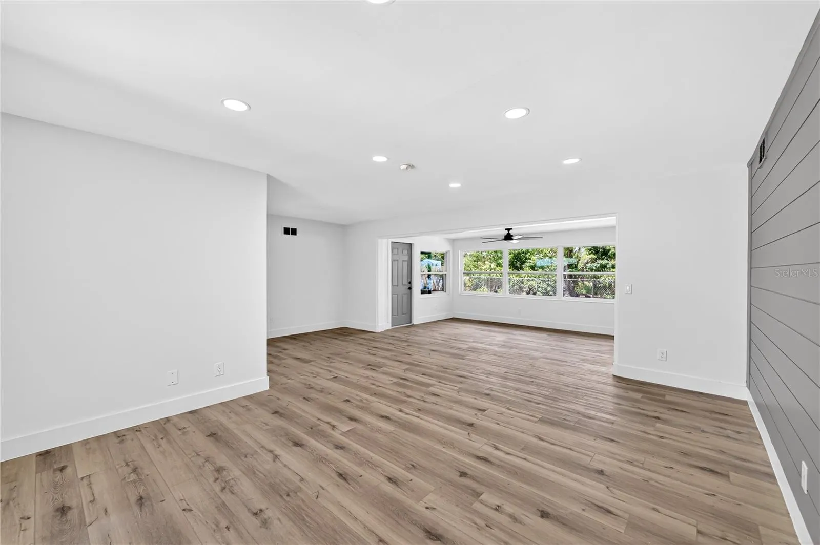 Welcome to highly sought after Belleair Bluffs. This open floor plan, two bedroom / two full bath home, is ready for its new family. Over the last 90 days, this home has gone through a complete renovation, including a new roof, all new windows, new meter and 150 amp Electrical. Backyard features a huge screened in lanai and spacious fenced in yard. Home updates also include new large brick paver driveway and walkway, all landscaping has been updated, fire pit in backyard. Upon entering the open kitchen, you will be greeted with all new stainless-steel appliances, new quartz countertops, and modern gray cabinets. Both full bathrooms have been updated with modern tile shower, lighting, vanities, and flooring. The entire home has been updated with new LVP flooring. There is also a spacious laundry room right off the kitchen.
