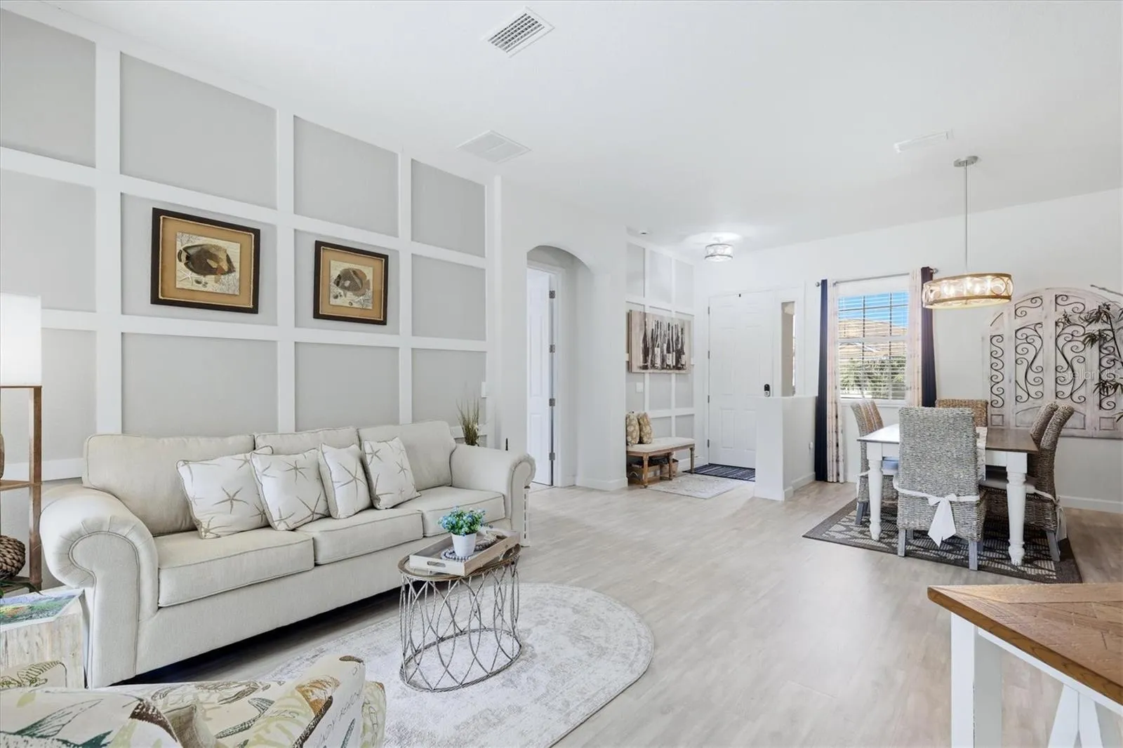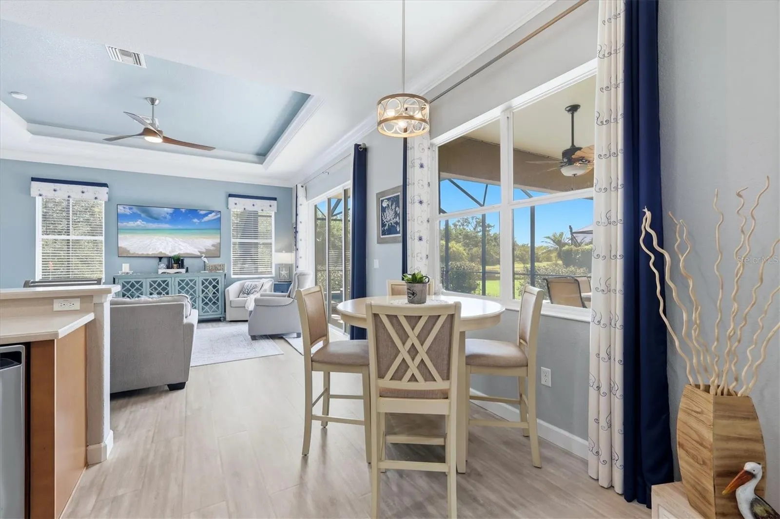 Welcome to luxury living in the highly sought-after River Strand Golf & Country Club, where elegance, comfort, and breathtaking surroundings come together in this beautifully updated 4-bedroom, 3-bathroom, 3-car garage, pool and spa home. From the moment you arrive, you’ll notice the impressive curb appeal, enhanced by freshly painted exterior, upgraded landscaping, sealed driveway and stylish new exterior lighting. Step inside to a completely refreshed interior featuring fresh paint throughout, newer carpet, gorgeous luxury vinyl plank flooring and crown molding that flows seamlessly through the home. The living and dining areas are elevated with custom accent wall detailing, while updated light fixtures, ceiling fans, and window treatments add a modern, polished touch throughout. The kitchen shines with a newly added backsplash and updated faucet, making it both functional and visually appealing. The thoughtfully upgraded laundry room includes added cabinetry and wainscoting which add to the storage and elegant style. The guest bathroom has been beautifully remodeled with a new vanity, mirror, faucet, lighting, and fresh paint, along with the addition of a sleek shower door. Step outside to your private oasis, featuring a sparkling pool and spa with a new pool pump, plus a rescreened lanai for uninterrupted relaxation. The backyard offers serene water views and backs up to a peaceful conservation area, providing extra privacy and a spacious, open feeling rarely found. Addition upgrades include garage storage solutions, new window blinds, and numerous finishing touches that make this home truly move-in ready. Located in the gaited, maintenance-free River Strand Golf & Country Club, this home features the FULL GOLF MEMBERSHIP. As a resident you will enjoy resort-style amenities including championship golf, multiple pools, tennis, pickleball, fitness center, dining, and more. This is Florida living at its finest – schedule your private showing today!