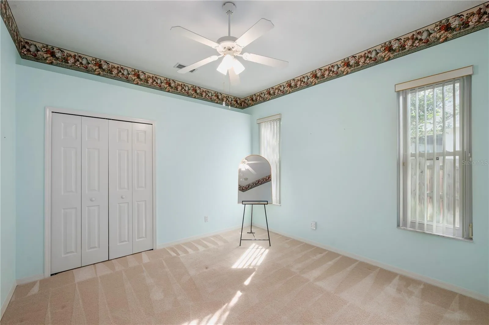 The oversized primary suite is a private retreat with serene pool and backyard views, dual closets with built-in shelving, and a beautifully renovated en suite bath showcasing plantation shutters, wood cabinetry, granite countertops, dual vanities, a garden tub, and a walk-in shower. Four additional bedrooms provide ample space, including one thoughtfully designed as a home office with built-in shelving, desk, double tray ceiling, and crown molding. All bedrooms feature carpeting and ceiling fans, while the two guest baths offer convenient tub/shower combinations.