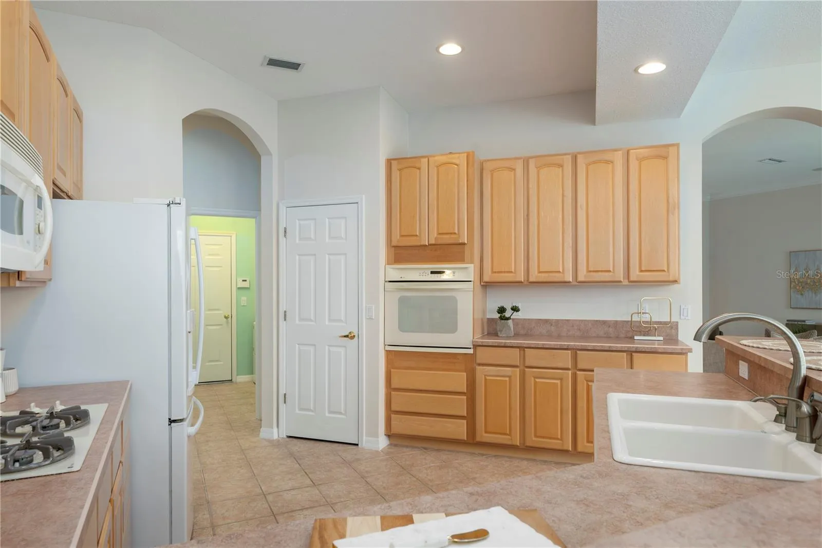 Step through the impressive double glass door entry into a welcoming foyer featuring a double tray ceiling, setting the tone for the home’s thoughtful details. The open floorplan flows effortlessly into a light-filled living and dining room combination, enhanced by crown molding and fresh interior paint throughout (2026). Just beyond, the eat-in kitchen overlooks the sparkling pool and features wood cabinetry, a wall oven, gas cooktop, walk-in pantry, and breakfast bar—perfect for casual dining or gathering with guests. The adjacent family room is bright and inviting, complete with built-in cabinetry, an entertainment center, and hurricane-impact decorative glass windows.