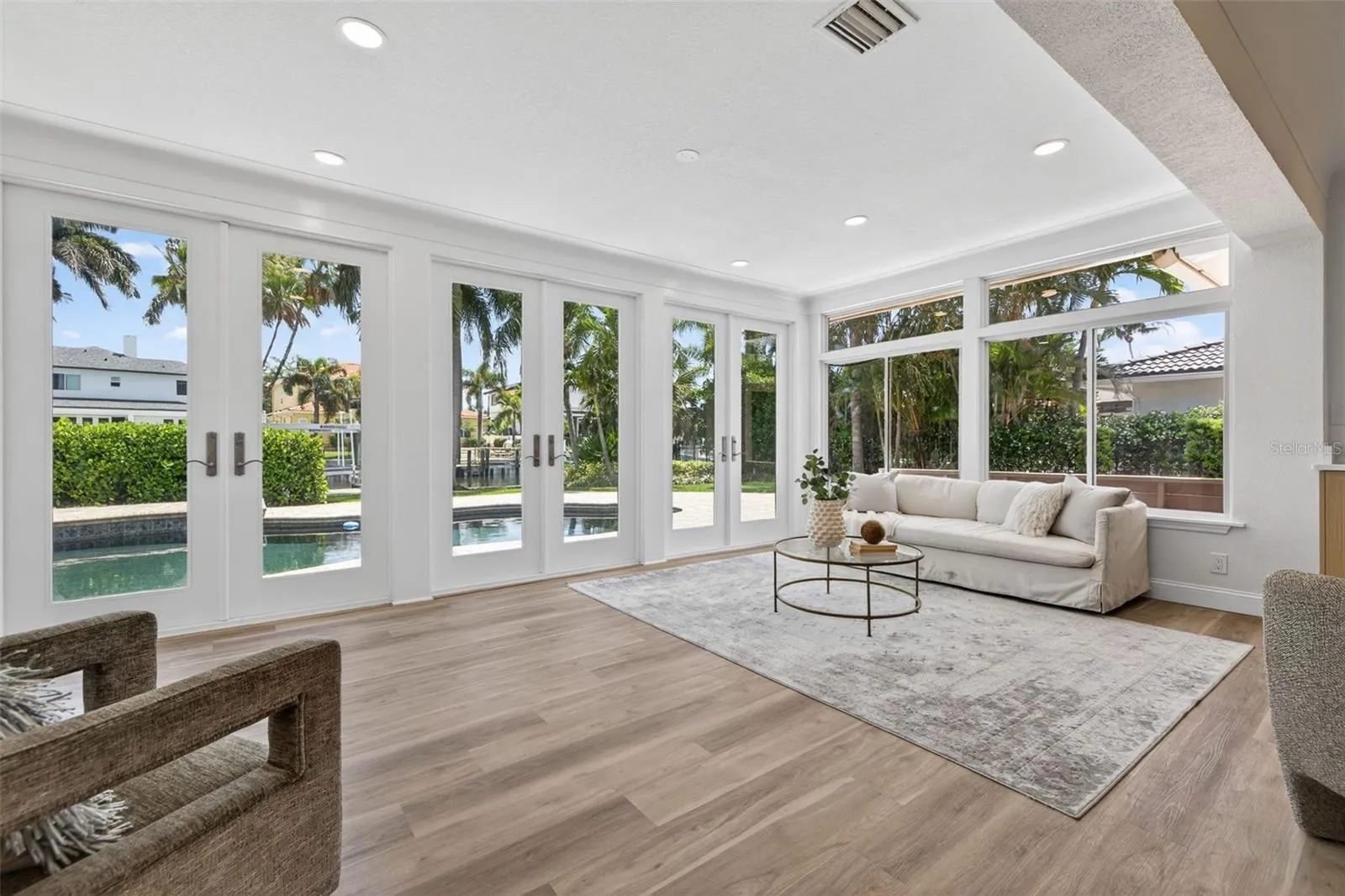 Tucked inside the peaceful enclave of Eden Isle on prestigious Snell Isle — one of St. Petersburg’s most coveted addresses — this beautifully updated three-bedroom waterfront pool home is the rare listing that genuinely earns the word exceptional. Set on a generous third-of-an-acre lot for a true private resort feel, with 80 feet of prime waterfront, a newer seawall and dock, and a 15,000 lb boat lift, this home isn’t just move-in ready. It’s live-your-best-life ready. Pull up the circular paver driveway and the curb appeal alone will stop you in your tracks. Inside, the split floor plan keeps things both practical and elegant — formal and casual living spaces that are equally at home hosting a dinner party or a quiet movie night with the quartzite wrapped fireplace and built-ins being your perfect backdrop. The New kitchen sits at the heart of the home, blending everyday functionality with elevated finishes that will make you actually want to cook. And when breakfast is ready, you’ll eat it with a bayou view. The primary suite is your personal retreat — high ceilings, a generous walk-in closet, a New spa-like en suite with dual sinks and a backlit vanity mirror that will make you feel like you’re getting ready in a five-star hotel. The split floor plan means your guests have their own wing, so everyone gets their privacy. Step outside, and the magic really happens. The resort-style pool and spa are framed by lush tropical landscaping and a spacious paver deck that was made for long, slow Florida afternoons. There’s an outdoor shower, ambient lighting for evening swims, and a newer paver walkway connecting the pool area directly to the dock — your personal launch point to Tampa Bay, the Gulf beaches, downtown St. Pete by water, or even Tampa for dinner. The bay is your backyard. The city is your front yard. The upgrades list reads like a new construction checklist: fresh interior and exterior paint, new floors throughout, new HVAC, new water heater, updated electrical, epoxy garage floor, concrete tile roof, newer seawall, newer paver driveway, new kitchen, and new bathrooms. There’s even a full interior laundry room — because no one should be doing laundry in a hot Florida garage. Snell Isle sits just one mile north of downtown St. Pete, connected by scenic Snell Isle Boulevard. Hop in the golf cart (yes, golf-cart-friendly streets here) and you’re at Michelin-recognized restaurants, the St. Pete Pier, world-class museums, sidewalk cafés, and boutique shopping in minutes. The iconic Vinoy Golf Club — with its stunning Mediterranean Revival architecture — is practically in your neighborhood. The Saint Petersburg Yacht Club, active for over a century, is just down the water. Everyday errands are equally easy, with Whole Foods, Trader Joe’s, Publix, and Fresh Market all along the vibrant 4th Street Corridor. Whether you’re looking for your forever home, a seasonal retreat, or simply the best address in St. Pete — this is it. Homes like this on Eden Isle don’t come around often, and they don’t last long when they do.