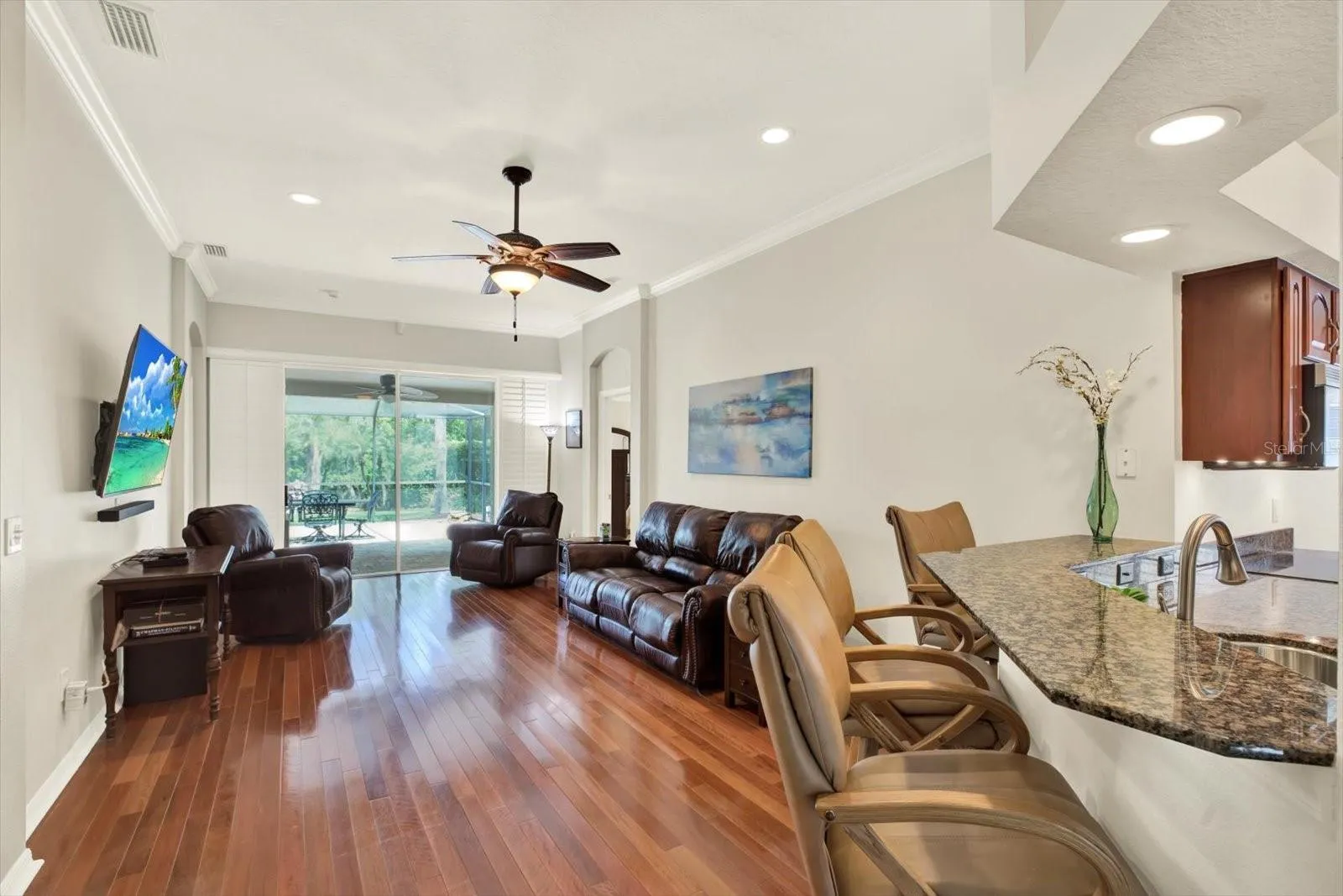 Stunning 4-Bedroom, 2-Bathroom Single-Story Home on a Lush Conservation Lot in Award-Winning Wilderness Lake Preserve – Land O’ Lakes, Florida (Just 30 Minutes North of Tampa) Welcome to your private Florida retreat! This gorgeous home sits on a peaceful conservation lot with instant curb appeal: a manicured lawn, mature landscaping, and a spacious covered front porch ready for morning coffee or evening sunsets. Step inside the bright foyer and fall in love with the warm hardwood floors, soaring high ceilings, and open-concept living. The expansive great room flows effortlessly between formal dining and living areas, creating the perfect space for both relaxing and entertaining. At the center of it all is a chef’s dream kitchen featuring a built-in wine fridge, rich wood cabinetry, granite countertops, a large center island, breakfast bar, high-end stainless-steel appliances, a walk-in pantry, and a cozy dining nook. Just steps away, the centrally located family room invites gatherings and opens through sliders to an incredible outdoor oasis: a covered lanai plus a huge, screened patio with breathtaking, conservation-backed views that feel like your own private nature preserve. The owner’s suite is a true sanctuary with double walk-in closets and a luxurious full en-suite bath. The three additional generous bedrooms are thoughtfully placed on the opposite side of the home for complete privacy. Beautiful architecture, comfortable single-story living, and seamless indoor-outdoor flow define this exceptional home. Recent upgrades include plantation shutters throughout, elegant crown molding, automatic irrigation, and a newer 2021 roof. Land O’ Lakes delivers the perfect blend of peaceful country living with A-rated schools and an easy commute to Tampa. As a resident, you’ll enjoy full access to the resort-style Wilderness Lake Lodge recreation center: fishing dock with boats, hot tub, splash pad, lagoon and heated lap pools, his-and-hers saunas, state-of-the-art gym, movie theater, sports courts (tennis, basketball, and sand volleyball), parks, playgrounds, nature center, party room, planned events, and more. This is Florida living at its finest — schedule your private showing today!