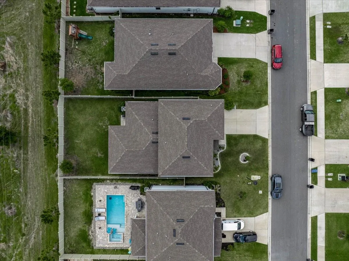 The first floor includes a private primary suite, an enclosed flex room ideal for a home office or study, and a convenient laundry room with washer and dryer. Step outside to an oversized covered lanai, providing a great space for relaxing or entertaining.