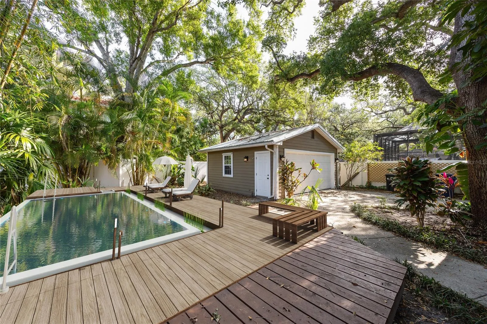 Set beneath a canopy of mature oak trees in the coveted Bayshore Beautiful neighborhood, this 3-bedroom, 2.5-bath home sits on an expansive nearly quarter-acre lot (65’ x 140’) with a long driveway leading to a detached 2-car garage and a truly oversized backyard—rare for this area and ready for a pool, expansion, or both.