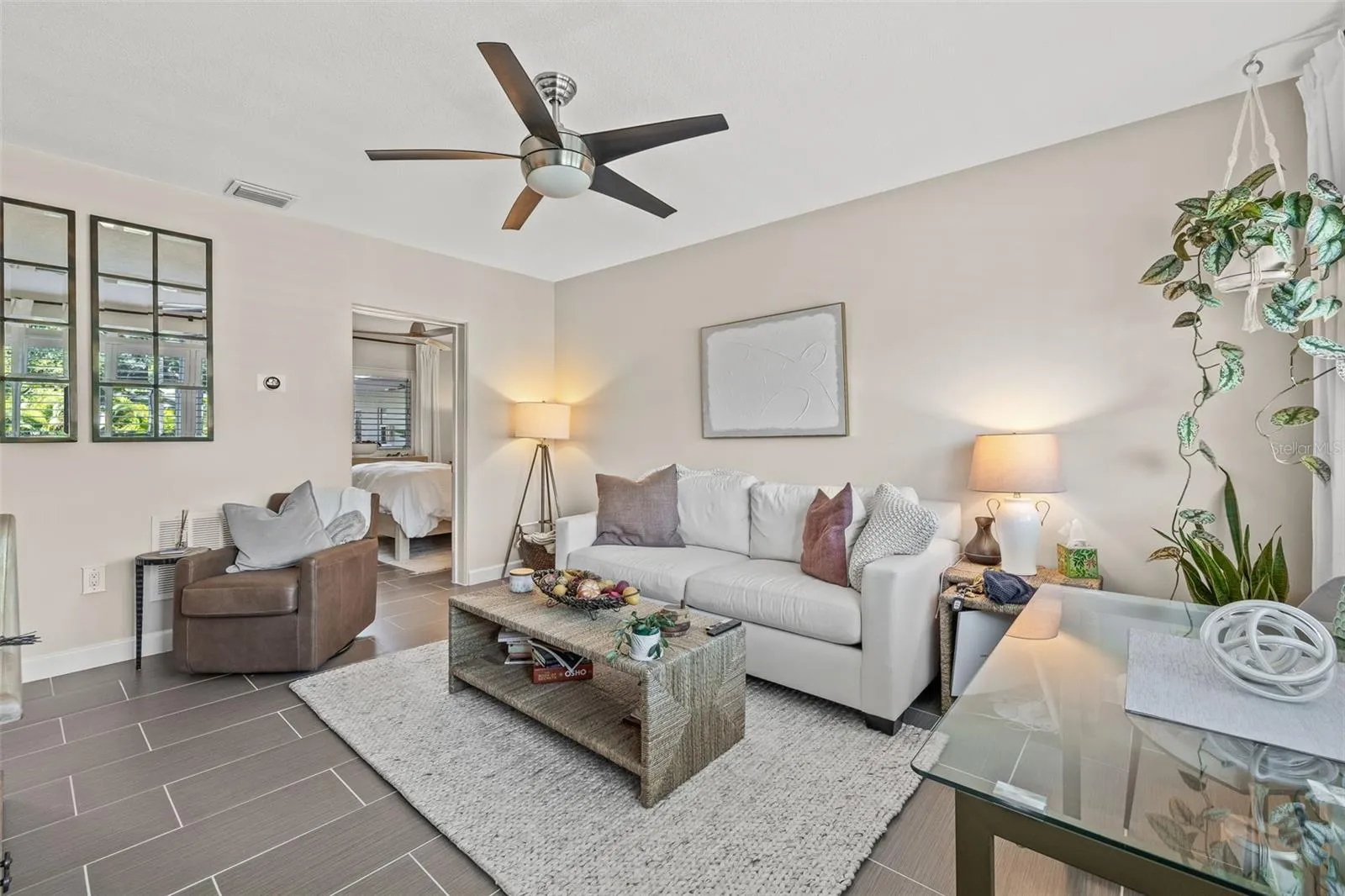 - Ceiling Fans(s), Thermostat, Window Treatments, Stone Counters