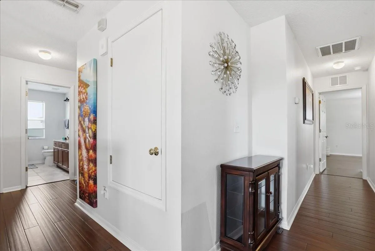 Welcome to Palm Cove! This move-in-ready home offers 5 bedrooms, 3 full bathrooms, and over 3,400 square feet of living space, complete with a 2-car garage, ideally situated on a large corner lot with no front-facing neighbors. This beautifully maintained property features fresh interior paint, newer exterior paint, and a new roof (2023), along with numerous upgrades completed within the past year, including a new water heater, water softener, and reverse osmosis water filtration system for enhanced comfort and water quality. The spacious kitchen includes stainless steel appliances, solid wood cabinetry, tile flooring, a pass-through to the family room, and an eat-in dining area—perfect for both everyday living and entertaining. Flooring throughout the home features bamboo in the main living areas and upstairs loft, tile in wet areas, and laminate in all bedrooms. Upstairs, you’ll find a large game room/loft and a generous primary suite with dual sinks, a garden tub, and a large walk-in closet, along with three additional bedrooms and a full bath. A downstairs bedroom with a nearby full bath and walk-in shower is ideal for guests or multi-generational living. Additional features include decorative wood accents, chair rail and crown molding, a bright two-story foyer, two HVAC systems, built-in closet systems, new blinds, new ceiling fans, updated toilets and shower heads, a new screened-in front entry lanai with a newly installed front screen door, and newly screened windows throughout. Enjoy outdoor living with a newly screened lanai in the backyard, which is fully fenced with 6-foot vinyl privacy fencing and includes a wide sliding gate for trailer or boat access. Palm Cove offers low HOA fees, no CDD, and community amenities including a pool, dog park, and clubhouse. Conveniently located near I-75, with easy access to Tampa, The Grove, Wiregrass Mall, Tampa Premium Outlets, AdventHealth Center, Pasco-Hernando State College, and top-rated schools. Schedule your private showing today!