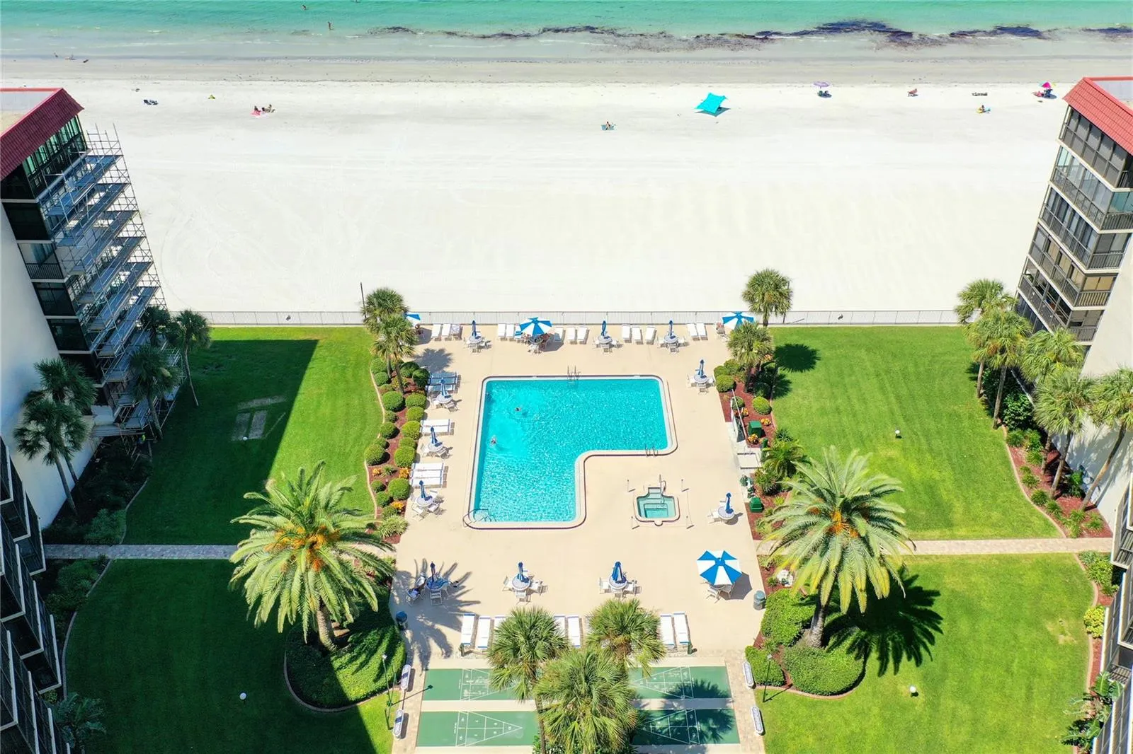 ANNUAL / 12-MONTH MINIMUM RENTAL – BEACHFRONT LIVING AT ITS FINEST! Live directly on the sand in this beautifully appointed Gulf-front 2-bedroom, 2-bath condominium offering sweeping panoramic views of the beach, heated pool, and the sparkling Gulf of Mexico. Located in the highly desirable 55+ Shore Mariner community, this residence delivers the perfect combination of comfort, style, and an active coastal lifestyle. Step inside to a bright and open floor plan, tastefully furnished and move-in ready for immediate occupancy. The updated kitchen features water views, a charming breakfast bar, and abundant built-in storage—perfect for both everyday living and entertaining. The spacious primary suite is a true retreat, complete with stunning Gulf views, a walk-in closet, and a private en-suite bath. The guest bedroom offers flexibility and comfort with two twin beds, its own en-suite bath, and a large closet—ideal for visiting family or friends. Enjoy year-round relaxation on the screened-in balcony, where you can take in breathtaking southwest-facing views and unforgettable sunsets in any weather. Additional conveniences include an in-unit washer and dryer, assigned carport parking space (#115), and ample guest parking. Residents of Shore Mariner enjoy resort-style amenities including a heated beachfront pool and spa, fitness center, sauna, shuffleboard courts, outdoor grilling area, billiards room, library, and a full calendar of social activities. The building also offers secure access, multiple elevators, dedicated storage, and beautifully maintained grounds. Ideally located within walking distance to local restaurants, shops, coffee spots, and entertainment, this is your opportunity to enjoy the very best of Florida’s Gulf Coast lifestyle. One small dog considered. Make this exceptional beachfront condo your next home—schedule your private showing today!