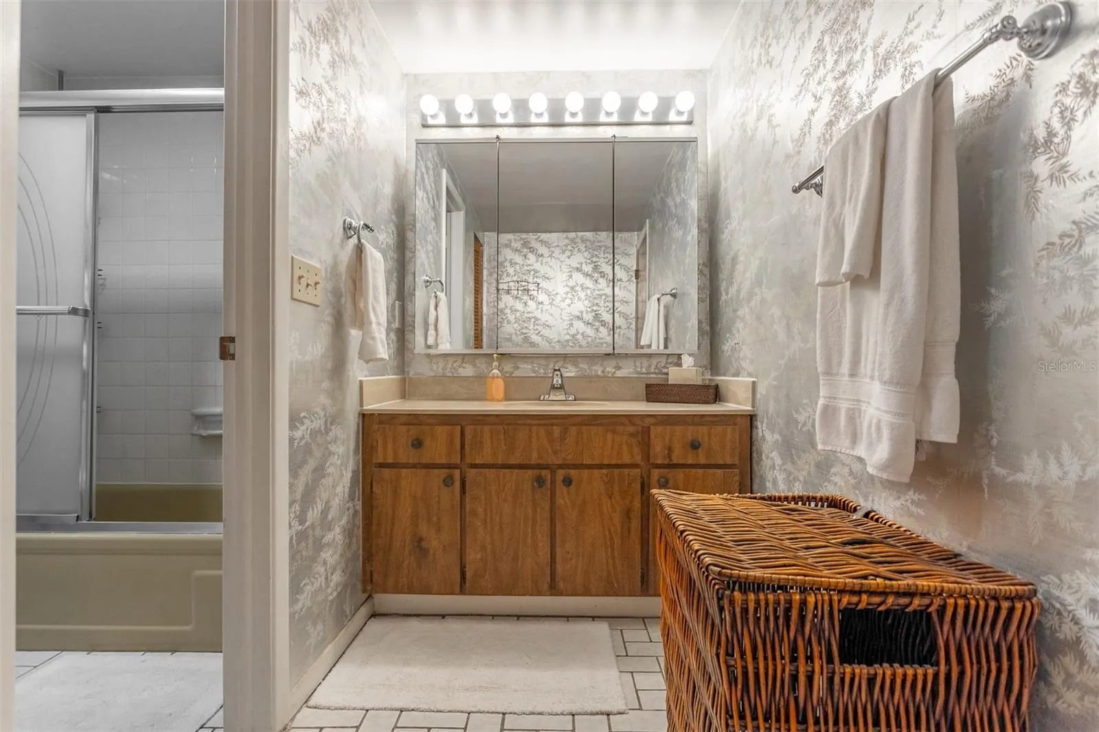 Inside the main home, you’ll find a thoughtfully designed layout with both a separate living room and family room, highlighted by a charming red brick fireplace and a dedicated dining area. The spacious kitchen opens to the family room and features a convenient pass-through window to the outdoor entertaining space, along with newer appliances including the refrigerator, microwave, and stove.