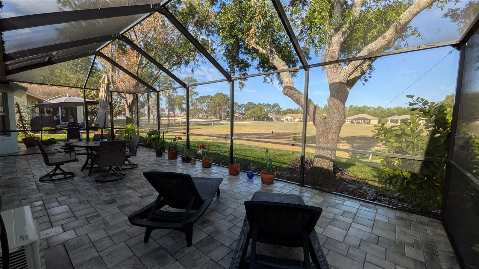 Pristine Golf Course Living in an Active 55+ Paradise. Experience the ultimate Florida lifestyle in this meticulously maintained, move-in-ready sanctuary. From the moment you arrive, the manicured, lush landscaping. Inside, the home has been completely transformed with contemporary finishes and a seamless flow. Modern Interiors: Gorgeous luxury vinyl plank (LVP) flooring runs throughout the entire home—no carpet anywhere. Chef’s Kitchen & Baths: Fully updated with stylish fixtures and finishes, ensuring a turnkey experience from day one. Outdoor Living: Step through to your newly screened back patio (2023), featuring elegant paver flooring. It is the perfect spot for watching the sunset over the greens. Superior Maintenance: Absolute peace of mind with a new roof (2019). The HVAC units that have been professionally serviced every six months since installation. Situated directly on the golf course, this home offers expansive fairway views with the added privacy of the cart path located on the opposite side of the course—giving you all of the scenery and none of the traffic.