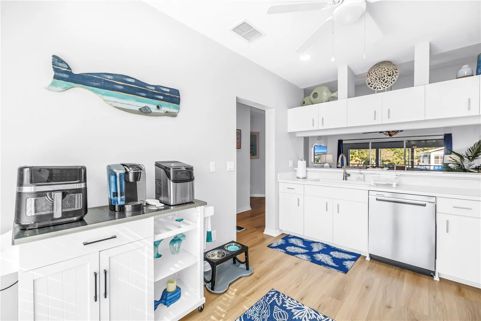 - Ceiling Fans(s), Thermostat, Walk-In Closet(s), Kitchen/Family Room Combo, Primary Bedroom Main Floor, Window Treatments, High Ceilings, Vaulted Ceiling(s)
