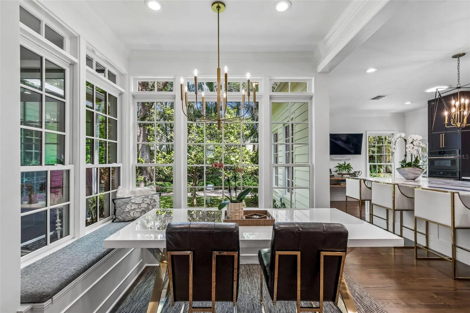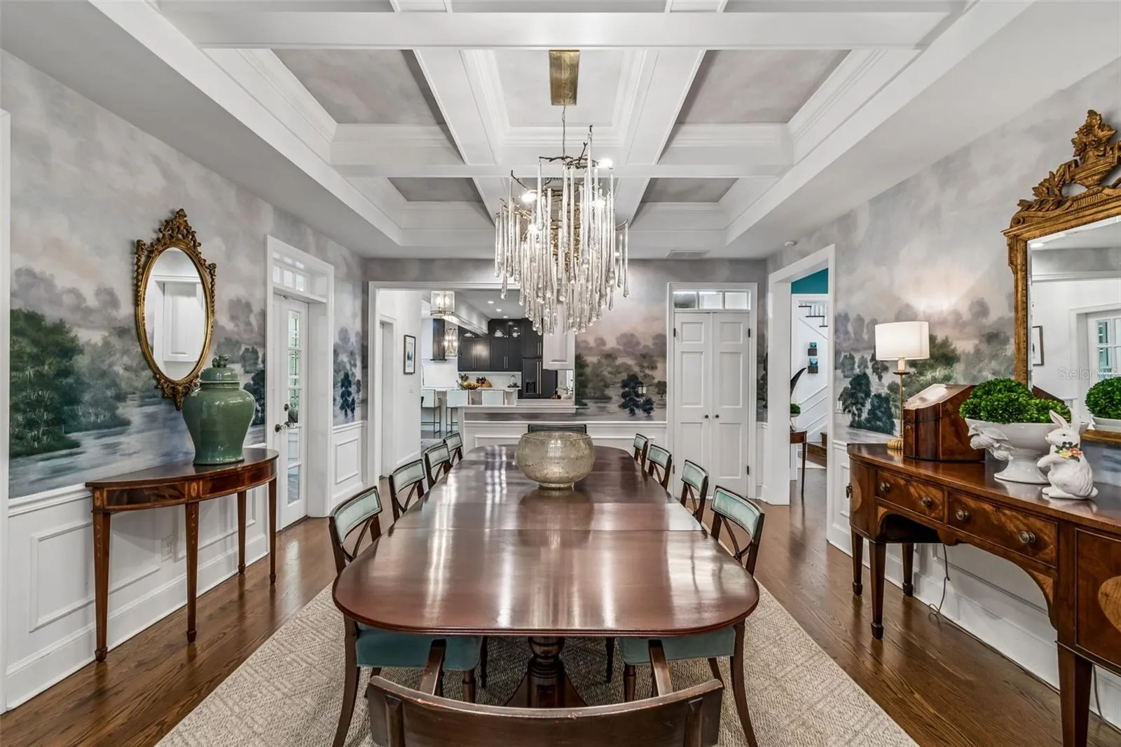 Located on one of Tampa’s most picturesque, tree-lined streets in the highly coveted neighborhood of Bayshore Beautiful, this iconic and stately residence masterfully blends timeless architecture with a comprehensive renovation designed for today’s lifestyle—and notably sits outside of a flood zone. Positioned on an expansive double lot just under half an acre, the property offers exceptional scale, privacy, and a true sense of retreat rarely found in South Tampa. Inside, the home is thoughtfully designed with multiple living and entertaining spaces, seamlessly balancing everyday comfort with elevated design. The heart of the home is the fully reimagined chef’s kitchen, featuring a massive island, marble countertops, custom cabinetry, hidden appliance storage, walk-in pantry, and a charming banquette-style dining area, all complemented by top-of-the-line appliances including a convection oven, induction cooktop, and speed oven. The formal dining room showcases coffered ceilings, a wet bar, and a dedicated walk-in storage space for serving pieces and china, while the adjacent family room is enhanced with custom built-ins, a bar, and an impressive 2,400-bottle, climate-controlled walk-in wine room. A private home office, sunroom filled with natural light, and a newly created mudroom with secondary laundry and built-in storage complete the first level.